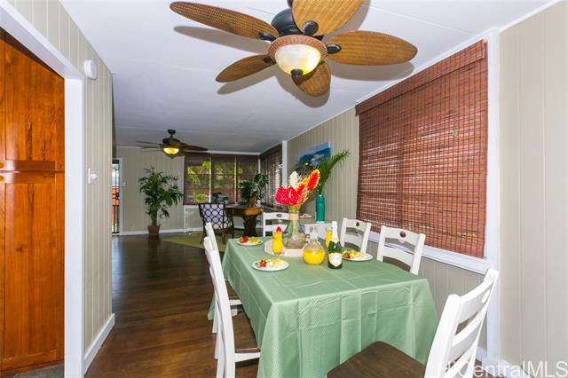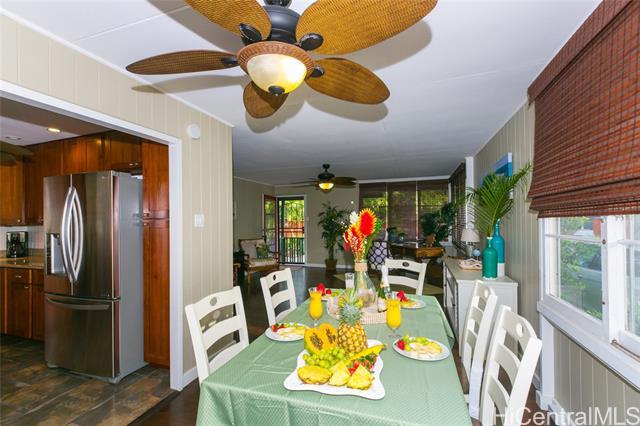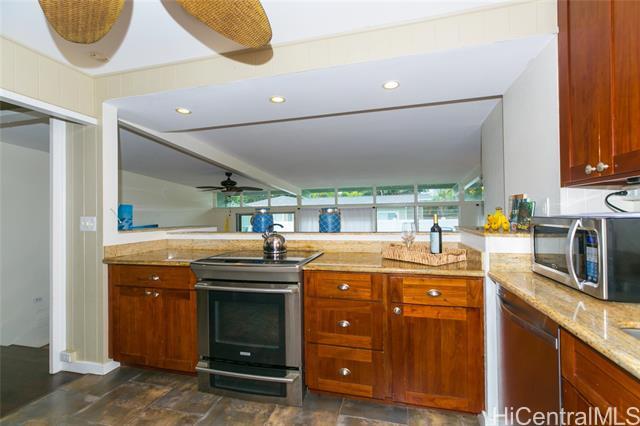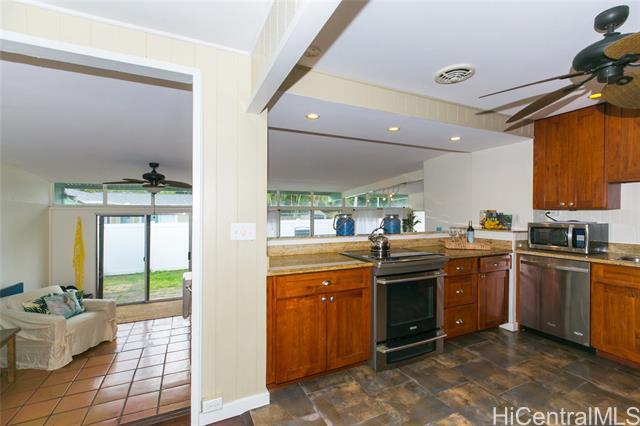 Utilities (water, hot water, trash, sewer, electric, wifi, landscaping, exterior pest treatment) are $600 in addition to rent. Home is close to Kailua Beach and Kailua Town-shopping & restaurants. 3 bedrooms, 2 bathrooms, private yard BEDROOMS AND BATHROOMS 3 bedrooms and 2 full bathrooms. The master suite has a Queen bed, Full bath and 2 closets. Bedroom 2 has a full bed. Bedroom 3 has 2 twin XL beds. KITCHEN The fully stocked gourmet kitchen has everything you could possibly need from wine glasses to pots, pans & rice cooker. The kitchen opens into the dining area & large family room beyond which you can step into a private yard. It has been tastily renovated with a fully equipped kitchen, classic Hawaii charm and island decor. To make working and learning remotely from paradise more efficient, fiber optic Wi-Fi is available.