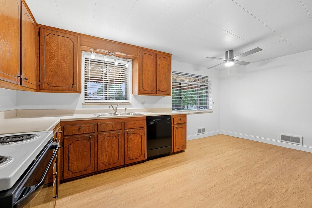 This spacious 2,387 sq. ft. ranch style home is ready for you to move in. The main level features a large family room with a walkout to the fully fenced backyard, perfect for relaxing or entertaining. An attached one stall garage provides added convenience. The finished basement offers even more living space with an additional family room, two bedrooms, a full bathroom, and a laundry room, making it ideal for guests, a home office, or extra storage. Located in a highly desirable Wheat Ridge neighborhood, you'll enjoy a welcoming community atmosphere while being just minutes from Sloan's Lake, Tennyson Street shops and dining, Edgewater, and local parks and trails. Easy access to highways makes commuting to downtown Denver or heading to the mountains simple and convenient. Don't miss this chance to rent a spacious home in one of Wheat Ridge's most convenient and charming areas.