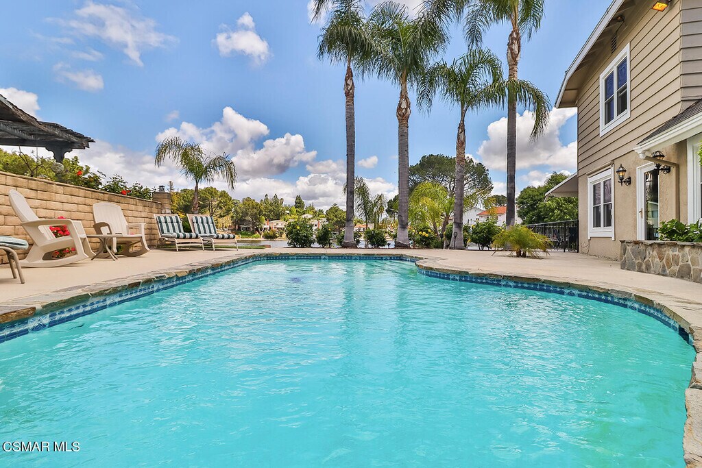 Remodeled Lakefront partially furnished home in Agoura Hills. Great location on cul-de-sac, on the lake, private pool, and covered patio to enjoy your views. High ceilings greet you to the living room with fireplace, formal dining room, plus breakfast area. Remodeled kitchen with granite, double oven, micro, fridge, and great storage. Four bedrooms with one bed and bath down. Three additional spacious bedrooms upstairs, main bedroom with views and plenty of closet space. Main bath with walk in shower and double vanity. Laundry room and direct access garage with cabinets/storage. Well loved family home, first time as a rental.