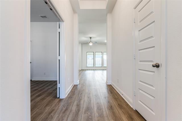 Warm and inviting North facing 1 story home for lease situated in the coveted Parks at Legacy community. This beautiful single-story home is a true gem! Elegant elevation and great curb appeal with large front porch area. This gorgeous home welcomes you with vaulted tray ceilings, long extended foyer and gleaming wood floors.Upon entrance you will see double doors leading to a flex space that can be used as office of 4th bedroom with walk-in closet. Two secondary bedrooms with shared full bath across the hall. The center of the home is the kitchen, breakfast & family room with great flow which is perfect for entertaining.With ample counter space, a spacious island, under cabinet lights and SS appliances this kitchen is a dream come true for any aspiring chef or culinary enthusiast.The primary bedroom is thoughtfully separated ensuring privacy and comfort with a generous walk-in closet. REFRIGERATOR and brand new WASHER DRYER included in the rent. Blinds throughout.The extended covered outdoor patio is perfect for enjoying outdoor living.Enjoy the community's exceptional amenities, including a pool, park, playground, basketball courts, and more. Exemplary Prosper ISD!!