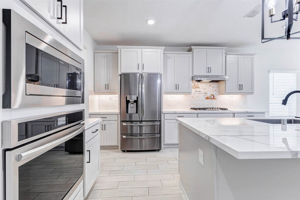 Lease 30711 Thicket Court today! This Chesterfield plan by Newmark Homes offers 4 bedrooms with a main-level primary suite,while the remaining bedrooms are located upstairs. You also have a timeless brick exterior,spacious yard,and a 2-car garage on a quiet cul-de-sac. Inside,the open floor plan offers wood-look tile flooring,decorator paint,and abundant natural light from large windows. The spacious family room opens to a chef-ready kitchen with soft gray cabinetry,an island,porcelain countertops,under-cabinet lighting,gas cooktop,and charming breakfast area. The primary suite offers a large walk-in closet,a quartz vanity with dual sinks,and a separate tub and shower. Upstairs,enjoy a game room,media room,and three guest bedrooms with a full bath. Outside,relax under the covered patio or in the expansive backyard. Additional highlights include 8-foot doors throughout the first level. Refrigerator,washer,dryer,theater equipment,and theater seating included. MLS# 67720933