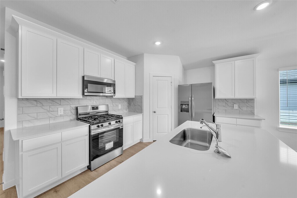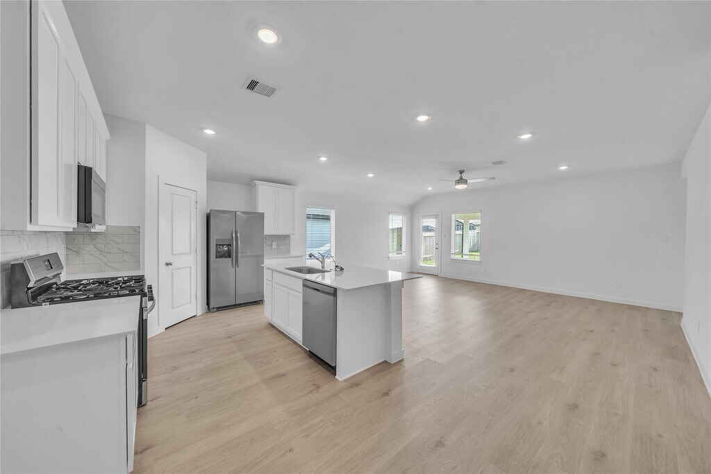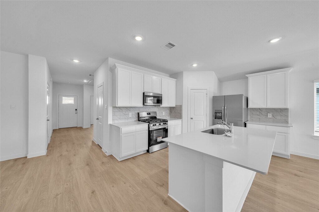 Brand-New home,available for immediate move-in. A spacious single story home featuring 4 bedrooms,a study,3 bathrooms,and a 2 car garage. The foyer opens to a guest bedroom with a full bath,a private study,and an entry coat closet. The open concept kitchen features a breakfast bar,elegant countertops,and stainless steel appliances,flowing seamlessly into the family room and dining area. Two additional bedrooms share a conveniently located bathroom off the main living space. The private master suite offers a stylish bath with dual vanities,a standing shower,and a generous walk-in closet. Vinyl flooring throughout the main living areas combines style with durability. Step outside to a covered patio off the family room. Enjoy Tamarron’s resort style amenities,including a pool,splash pad,fitness center,playgrounds,lakes,trails,and sports fields. Conveniently close to shopping,dining,I10,Grand Parkway,and Westpark Tollway. Zoned to top-rated LCISD schools. MLS# 15215695