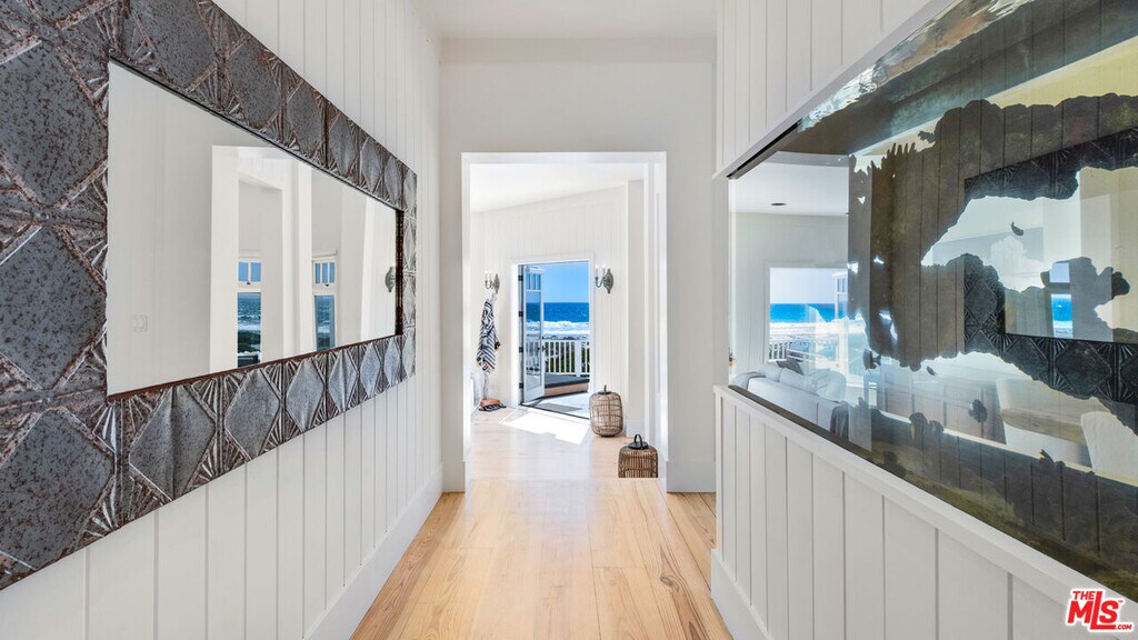 This Cape Cod-style home on Trancas Beach blends Malibu's coastline with effortless, luxurious living. Set on a wide, flat stretch of sandy shoreline, this residence offers expansive ocean views and ample space for indoor-outdoor living and entertaining. A gated entry opens to a charming breezeway, leading to a private courtyard featuring a flagstone fireplace, lounge seating, and a covered Jacuzzi with a waterfall.Freshly updated inside and out, the property includes a two-bedroom, one-bath guesthouse with its own kitchen, gym area, living room with fireplace, and abundant natural light. Accessible either from within the main house or through a separate courtyard entrance, the guesthouse offers privacy and flexibility for visitors or extended stays. The main house showcases light-toned wood floors and ocean views from the moment you step inside. Off the entry, a bonus/media room is equipped with a pool table, Stewart projection screen, en-suite bathroom, and French doors opening to the courtyard. A powder room and laundry room are also conveniently located off the entry hall.The country-style kitchen is the heart of the home, featuring a cozy fireplace, stone countertops, high-end appliances, and ample cabinet space. The kitchen connects to both the family room, which opens to the courtyard, and the living room, where ocean views take center stage. The living room boasts a fireplace and three sets of French doors that lead to a newly renovated, heated beachfront deck. This outdoor space is perfect for dining, lounging, and entertaining, complete with a Weber barbecue, firepit, and steps down to the sandy beach.An additional bar-lounge area enhances the living room's appeal, while the formal dining room, with its fireplace, flatscreen TV, and ocean views, offers a sophisticated setting for meals. A large double-sided fish tank, visible from both the dining room and hallway, adds a unique touch.The upper floor houses three bedrooms, each with balcony access. The primary suite is a luxurious retreat with vaulted ceilings, a fireplace, a sitting area with stunning ocean views, custom closets, a spa-style bath, and an oceanfront balcony with seating. Both the main house and the guesthouse are air-conditioned for comfort.Additional features include an outdoor shower in the side yard, three garages facing the street, and easy access to Trancas Country Market, a short walk away with its shops and dining options. This oceanfront getaway epitomizes Malibu living, with its perfect blend of style, comfort, and breathtaking views. $95,000 per month during the summer months. MLS# 26668339