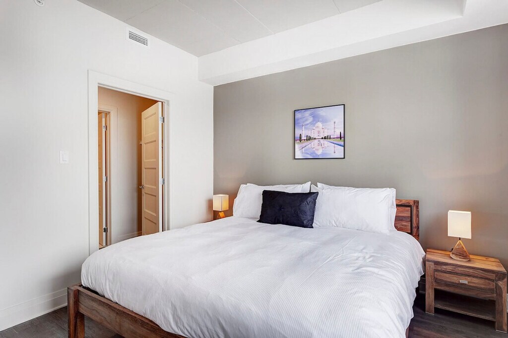 Elevate your stay in this modern Laval apartment, where luxury meets comfort. Perfect for business, family, or a romantic getaway, this bright space with high-end finishes offers a memorable experience in vibrant Laval. Featuring three spacious bedrooms with plush queen and king-size beds, a fully equipped, sleek kitchen, and a living room with an attached balcony offering stunning skyline views, this apartment is designed for your ultimate comfort. Enjoy the convenience of in-suite laundry and a pet-friendly environment, all in a prime location near top attractions. With 24/7 concierge support, you'll always feel at home. Welcome to your urban oasis. This open-concept living area blends contemporary style with ultimate comfort. The gourmet kitchen flows seamlessly into a sunlit lounge, where you can sink into the plush designer sofa, stream your favorite shows on the Smart TV, or enjoy your morning coffee on the private balcony with breathtaking skyline views. Unleash your culinary creativity in this gourmet kitchen, equipped with high-end appliances, sleek fixtures, and generous counter space. Whether it’s a quick espresso or a multi-course meal, the thoughtfully designed layout makes every cooking experience effortless and enjoyable. Elevate your entertainment with our IPTV Box, featuring over 300 channels available upon request for an additional fee, providing endless viewing options for your enjoyment. Convenient parking is available for a fee, with EV chargers in the lot to keep your electric vehicle powered throughout your visit. Unwind in our stylish private lounge, complete with a billiard table for your entertainment. Enjoy relaxing moments on the furnished terrace, equipped with a BBQ area for delightful outdoor gatherings. Located in the heart of Laval Chomedey, this apartment is just 35 minutes from Saint-Sauveur Ski and the beautiful Laurentians. Enjoy quick access to highways 15, 13, and 440, making downtown Montreal just a 20-minute drive away. You’re also only 17 km from Pierre Elliott Trudeau International Airport. Convenience is key, with major supermarkets, a pharmacy, and a variety of restaurants and cafes right across the street. Plus, you’re within walking distance of Carrefour Laval shopping center, Centropolis, movie theaters, and plenty of family-friendly activities. Your ideal Laval getaway awaits. This smoke-free apartment offers a safe, welcoming environment for guests of all ages. Guests will have full access to the entire apartment with complete privacy. A Notice to Vacate must be sent in writing 30 nights before the departure date. Failure to do so will result in a charge of 30 nights for stays over 30 nights. Reservations can be extended with 30 nights notice and are always subject to availability and rate variances. Achieve the perfect work-life balance in a space designed for productivity and relaxation. With ultra-fast Wi-Fi, a dedicated workspace, and a tranquil atmosphere, this apartment is ideal for business travelers seeking convenience and comfort. [SI]
