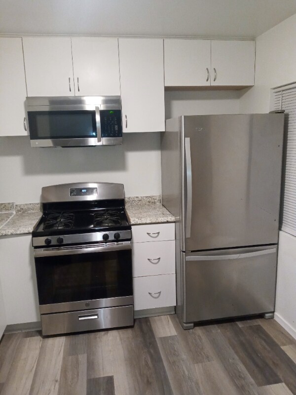 Property Id: 2367865 Cozy 2 bedroom house one bathroom 2 carpot garage entry thru alley washer dryer hook ups Gas Stove, microwave, refrigerator .