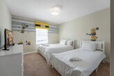 Discover true comfort in this charming 4-bedroom townhome nestled within the captivating Storey Lake resort. Bursting with family-friendly offerings such as pools, a fitness center, a tiki bar, and mini-golf, this locale is a haven of leisure. Seamlessly integrating living, dining, and kitchen areas, this space is customized for up to 10 guests, guaranteeing a memorable getaway. Plus, relish in the delight of a private pool, an extra touch of relaxation for your stay. Enter your family's haven, a meticulously designed 4-bedroom townhome offering unparalleled comfort. The expansive living room seamlessly integrates with the dining area and a fully equipped kitchen, creating a central retreat for relaxation and culinary enjoyment. Step outdoors to your private, heatable pool on the patio – an oasis of tranquility. The first floor welcomes you with a regal queen bedroom, complete with an attached bathroom for ultimate convenience and privacy. As you ascend to the second floor, you'll discover the remaining three bedrooms. The master king bed suite ensures a serene retreat, while the other two bedrooms provide flexible sleeping arrangements, each featuring a double and a single bed, and sharing a bathroom. For your convenience, a laundry room equipped with a washer and dryer awaits. Stay seamlessly connected with complimentary Wi-Fi and relish the convenience of free parking. Your stay commences seamlessly with a thoughtful welcome kit, encompassing essential bathroom and kitchen amenities. Replenishment of bathroom and kitchen amenities is the guest's responsibility. Heating the pool is a paid service and there is also a fee charged to use the barbecue grill. Storey Lake Resort has the perfect location just 10 minutes from all major attractions and theme parks in Orlando, including Walt Disney World, Universal Resort, and Sea World. You will find fantastic resort amenities for the whole family to enjoy with a tiki bar, a resort-style pool with slides and a lazy river, a sports court, mini-golf, kayaking, and a fitness center. There are two clubs inside the property, one of them with a themed pirate pool that kids will love, just walking distance from the house. Located just off Osceola Parkway, the resort has easy access to restaurants, shopping, and supermarkets, all within a 5-minute drive. Quiet hours are between 22:00 and 8:00. [SI]