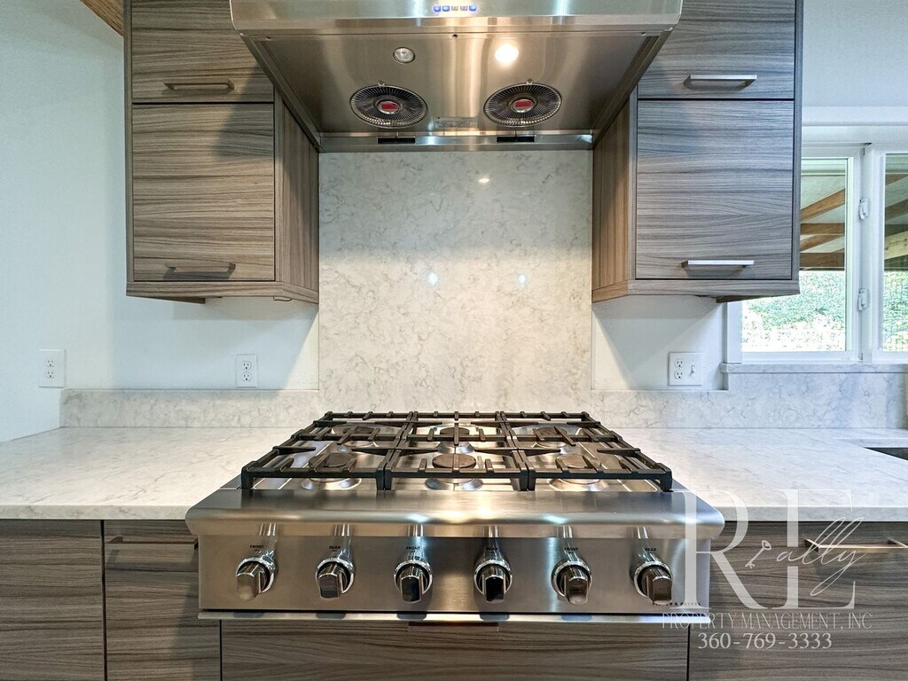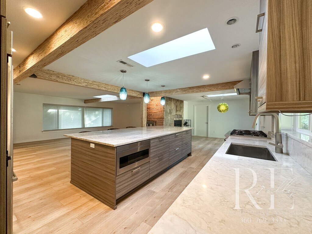This beautifully updated mid-century modern rambler in Poulsbo offers a rare blend of architectural charm and high-end comfort. From the moment you walk in, the home welcomes you with exposed wood beams, warm-toned flooring, and an open layout that’s both expansive and inviting. Skylights and full-length windows bring in streams of natural light, creating a vibrant and uplifting atmosphere throughout the main living areas. At the heart of the home is a true chef’s kitchen—fully outfitted with a commercial-grade gas range, double ovens, an oversized quartzite island with bar seating for four, and a full-height wine fridge. Sleek wood-grain cabinetry and stainless steel finishes offer a modern contrast to the home’s earthy textures, making it the perfect space to cook, gather, and entertain. The kitchen flows seamlessly into the dining area and a cozy second living room anchored by a wood-burning stove and a feature wall of natural stone. The primary suite feels serene and secluded, featuring generous closet space—including a walk-in closet with built-in shelving—and a modern en-suite bath with dual sinks, deep-soaking tub, walk-in luxury shower, gold fixtures, and geometric tile detail. Two additional bedrooms and a separate home office offer flexible options for working or relaxing at home. Every room is grounded in comfort, with subtle design choices that reflect the home’s mid-century roots. Out back, a large covered deck invites year-round enjoyment, overlooking a private, fully fenced yard dotted with mature fruit trees and forest-edge privacy. A firepit adds to the relaxed outdoor living vibe, while a custom-built catio offers a secure outdoor space for your feline companions. The attached two-car garage provides additional storage and convenience. Situated on a quiet street just minutes from downtown Poulsbo, this home offers a peaceful retreat with easy access to shops, dining, and Highway 3 for commuting. It’s a rare rental that feels like a long-term home. Managed by REally Property Management, Inc. Offering 1-yr lease and renewals. Tenant is responsible for paying power, propane, trash, a low $50 for water & septic, $10/mo credit reporting, & renters liability insurance. We require the full 1st month's rent and deposit to move in or the option to make small long-term payments on deposit through 3rd third-party provider if qualified. $50 application fee per person, must apply on RPM web site www , re ally pm , c o m. We do not accept comprehensive reusable reports or Zillow apps. No smoking in home. Pets okay, screening required, $450 pet fee per pet, limit 2. Available Immediately. Self-schedule viewing on our showing link below or on our web site! htt ps:// calendly .co m/ rpm rentals
