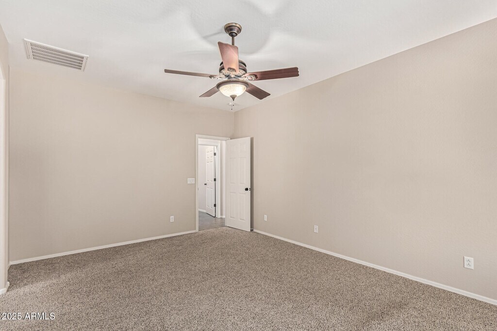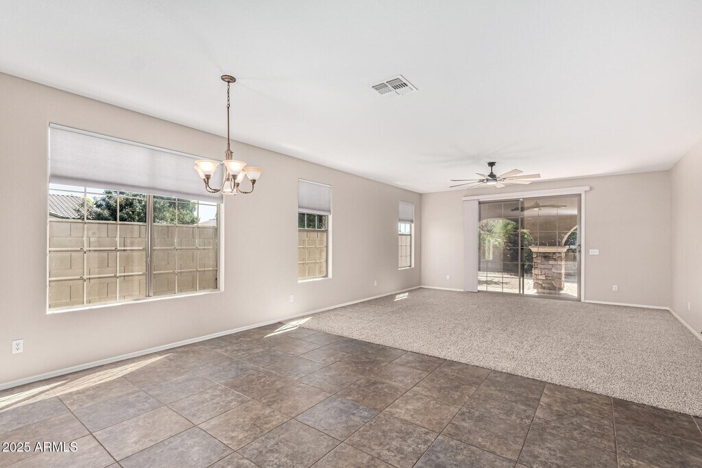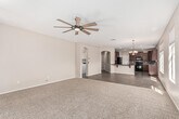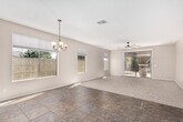 This Seville rental offers three bedrooms,two bathrooms and a two-car garage with an epoxy floor. The interiors are neutral and low-maintenance with tile in the wet areas and carpeting in the living spaces. The kitchen has staggered cabinetry,a mosaic tile backsplash,granite countertops and built-in appliances. The primary bedroom includes a generous closet and an ensuite with double sinks plus a separate tub and shower. Outside there's a covered patio,paved seating area and a maintained lawn - practical outdoor space for morning coffee or small gatherings.