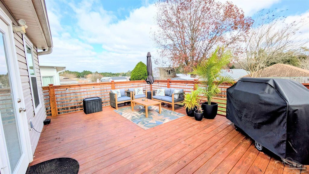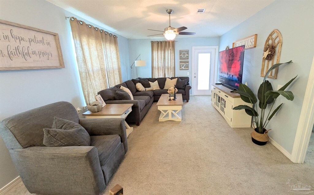 3079 Flintlock Dr is a great 3 bedroom,2 bath patio home located in the quiet Springfield neighborhood just off Blue Angel Parkway; minutes from the Navy Federal campus with quick access to I-10 and Pensacola NAS. The main living spaces are filled with natural light and include updated LVP wood-look flooring,neutral wall colors,and thoughtfully chosen fixtures that create a clean,modern feel throughout. The kitchen and dining area serve as the heart of the home,with a spacious layout that includes ample cabinetry,stainless appliances,and a large breakfast bar perfect for casual meals or entertaining. The adjoining dining space flows easily into the living room,making the home feel open and connected while still offering cozy spaces for everyday living. Both bathrooms are tastefully updated,featuring modern lighting,vanity mirrors with rustic framing,and clean finishes that feel fresh and contemporary. The primary bathroom includes a dual-sink vanity and plenty of storage,creating a comfortable and functional space. Additional bedrooms are well-sized and full of character with carpet in each Outside,the fully fenced backyard is ready for relaxation and gatherings. A beautiful elevated deck offers the perfect space for outdoor dining,grilling,or unwinding while overlooking the yard. There is also a fire-pit area and plenty of room for pets or play. This property requires participation in the MSPM Resident Benefit Package for an additional monthly fee. Additional information on this program can be found upon submission of application.