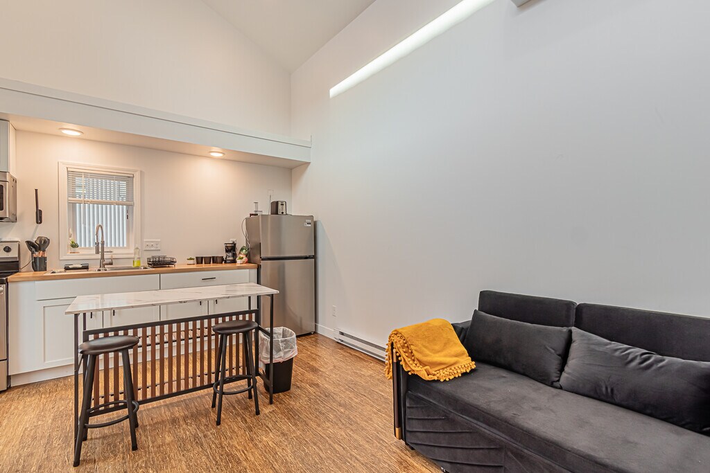Super unique unit in Downtown Fargo. This is a Tiny Home! No connected nieghbors for this rental. There is a kitchen, living/dining area, bathroom with shower and loft bedroom. Very modern and updated finishes. This is a newer property built recently. Outside shared patio and yard space. Off street parking included. Great location close to Downtown Fargo and NDSU Campus.