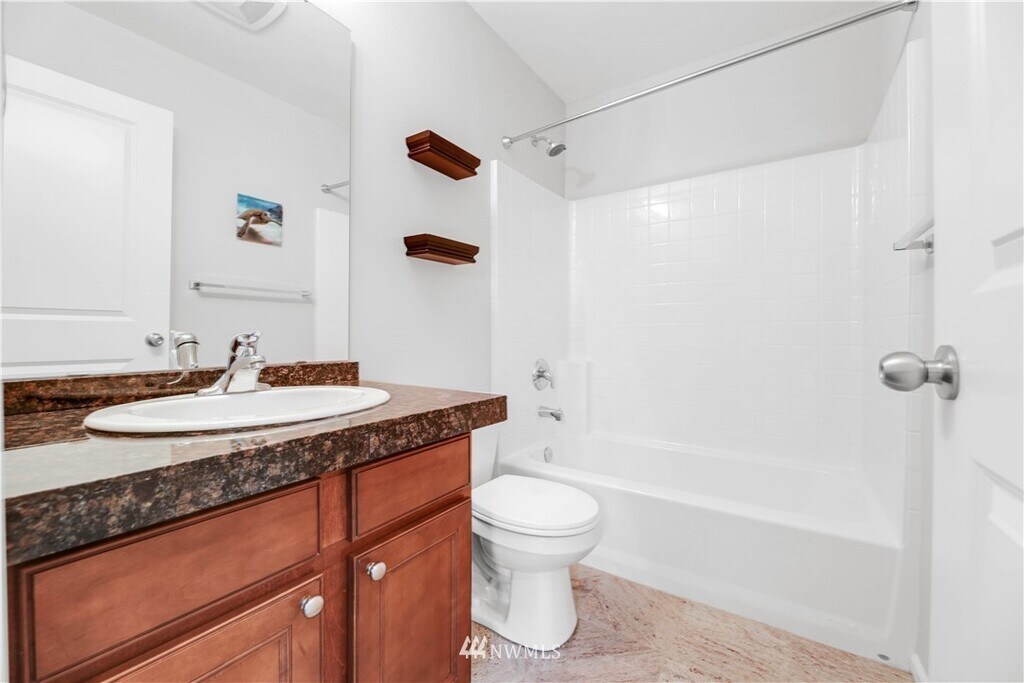 This townhome offers a functional layout across three levels with great natural light and flexible living space. The main level features a tandem 2-car garage and access to a private fenced backyard patio. The second level offers an open-concept living space with a spacious living room, kitchen, dining area, balcony, and a convenient guest bathroom. The kitchen includes hardwood flooring, stainless steel appliances, and a gas range. The third level features two bedrooms, two full bathrooms, a loft/office space ideal for working from home, and an in-unit washer and dryer. An additional feature includes a Ring doorbell. Easy access to I-5/I-405, Park and Ride, Bus line, Athletic Clubs, McCollum park and pool, and just minutes to Mill Creek Town Center shopping, dining, and amenities.