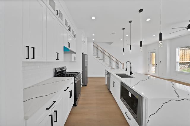 Price reflects prorated rent for a 13 month lease term with 1 month free. Contemporary 3 bedroom 2.5 bathroom home designed with an airy open layout and impressive ceiling height that enhances the sense of space throughout the main living areas. Large windows bring in abundant natural light creating a bright and welcoming atmosphere. The kitchen serves as the centerpiece of the home featuring modern cabinetry a spacious island ideal for gathering and all appliances included. The open design connects the kitchen living and dining areas making the space perfect for everyday living and entertaining. Upstairs the primary bedroom offers a relaxing retreat with a well appointed bathroom and ample closet space. Two additional bedrooms provide flexibility for guests family members or a home office setup. This home is move in ready and offers a stylish modern feel with a functional layout suited for comfortable living.
