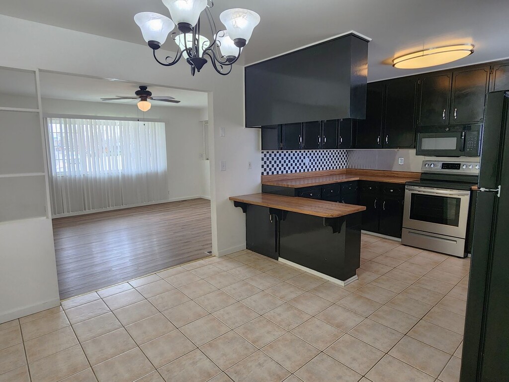 3 bedrooms, 2 bath, 1 car garage with also another 2-car detached garage/shop Comes with refrigerator, electric range and dishwasher. No pets.