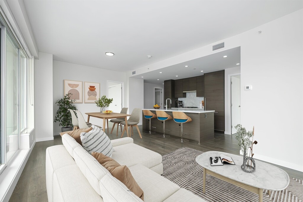 Bright • Spacious • Luxurious Living at Suter Brook $3500 Welcome to this stunning 2 Bed + Den (Very Big den can be used as a 3rd bedroom), 2 Bath, 1,099 SF corner home featuring 9 ft ceilings, endless southeast views, and a wrap-around covered balcony that spans the living and dining areas. Flooded with natural light and designed for comfort. ? Includes 2 Parking Stalls + 1 Locker Interior Features: AC Euro-inspired kitchen with stainless steel appliances Gas cooktop, marble countertops, and large island with bar seating Spacious open-concept living & dining areas Primary bedroom with walk-in closet and spa-like 5-piece ensuite Unfurnished 1-year tenancy required Building Amenities (Approx. 40,000 sqft!) Indoor pool Cardio & fitness gyms Games room Theater room Golf simulator Indoor children playroom plus separate outdoor playground Sauna & steam room 24/7 concierge Modern meeting room Luxurious party room Common BBQ area Only 3 years old Location: Heart of Suter Brook Village Steps to shopping, dining, recreation, Rocky Point Park, and a short walk to SkyTrain. Live a truly resort-style lifestyle in one of Port Moody’s most desirable communities.