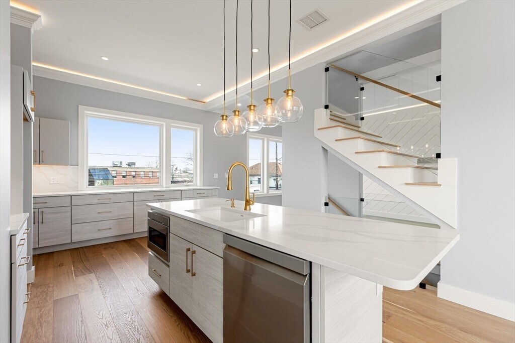 NEW CONSTRUCTION TOWNHOME FOR RENT! Stunning 4-level contemporary residence with 4 bedrooms,3.5 baths,and garage parking. Features include a first-floor bedroom with full bath,chef’s kitchen with premium finishes,open concept living/dining,gas fireplace,and laundry on main level. Upper levels offer a luxurious primary suite,additional spacious bedrooms,and skyline views. Exceptional finish work throughout with soaring ceilings and walls of glass. Prime location near Moody Street shops,dining,and public transit. MLS# 73459804