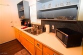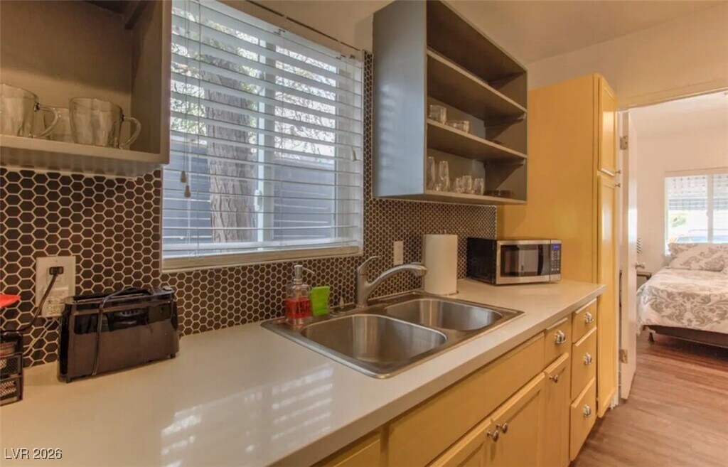 Close to the continuous action of the Fremont Street Experience and for most easy walking distance. This one story two bedroom home is small and still has everything you need. A full kitchen complete with washer and dryer. A living room that shares space with the dining area. The two bedrooms are a nice size. A favorite about this property of mine is the backyard. It is huge with a covered patio and grill.