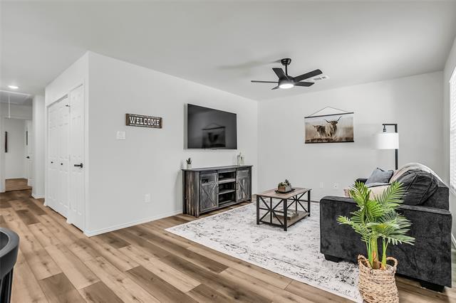 Finally an affordable and stylish new home built with quality! Thoughtfuly designed to bring luxury looks to an afforable price point! Soft close kitchen cabinets, stainless steel appliances, LED lights throughout and ceiling fans in all bedrooms. You won't be disappointed when you walk into the large open living area with eat in kitchen and dining room. Full size laundry room with washer and dryer hookups. Incredible and efficient floor plan with plenty of storage space featuring large walk in closets in 2 of the bedrooms and 2 closets in the 3rd. Large primary suite with private attached full bath and walk in closet. Full size washer and dryer area. Fully fenced backyard. Next to several neighborhood parks and a large green space.