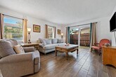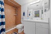 Quiet & comfortable 2 bedroom, 2 full bath with private fenced in patio. Full kitchen with microwave, dishwasher and cookware and dishes. Open living & dining area comfortably furnished with a fold out bed in couch. Bedrooms provide 1 queen size bed & twin beds. Master bedroom has private bath with large shower & another has patio access. Beautiful waterfront community fenced yard w/patio & grill. Coin operated w/d on ground floor. Kick back & relax in this calm, stylish space. Enclosed back patio, great for grilling!