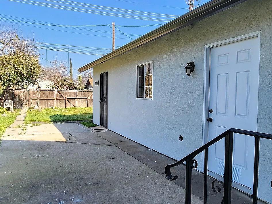 Splendid & updated property in central Modesto with 3 bedrooms, 1 bathroom + 1 bed, 1 bath detached ADU and backyard access for RVs & additional parking through its back alley! New roof on both units, freshly painted inside & out, featuring new flooring throughout. Main house kitchen with new cabinets & granite counter tops. Dining area, family room combo. Remodeled bathroom. Central heating & air conditioning. Double pane windows. Energy efficient LED light fixtures & ceiling fans. Extensive driveway and parking area carport. Updated 1 bedroom, 1 bathroom & kitchenette, detached grand-fathered ADU + utility, laundry room with separate access from main house.