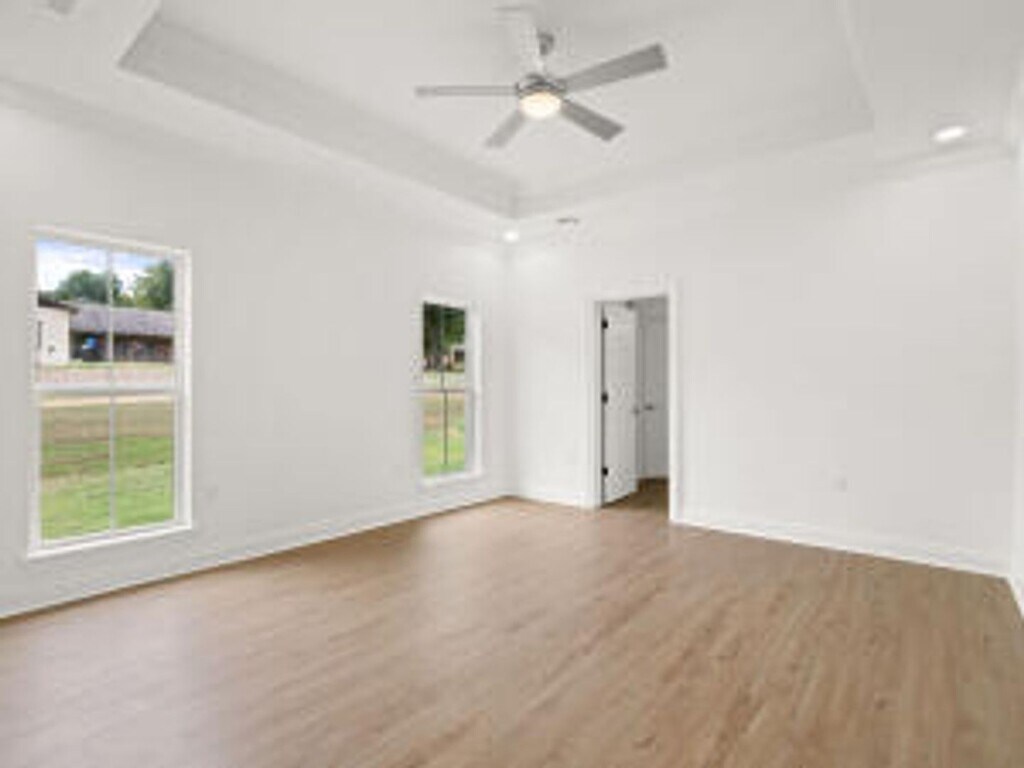 This newer brick home in Leesville offers 1,922 square feet of beautifully designed living space with four bedrooms, two bathrooms, and a two-car garage. Just 15 minutes from Fort Johnson’s main gate, the home features an inviting open floor plan with high 11-foot ceilings, recessed lighting, and ceiling fans in the spacious living area. Wood flooring runs throughout, adding a warm and cohesive feel to every room while ensuring durability and easy maintenance. The kitchen is a standout, featuring custom cabinetry, sleek granite countertops, an oversized island with a breakfast bar, and a generous pantry. It comes fully equipped with modern appliances, including a range/oven, refrigerator, microwave, and dishwasher. The primary suite is a relaxing retreat with tray ceilings, large windows, and ceiling fans. Its ensuite bathroom offers a tub/shower combo and dual closets for plenty of storage. The secondary bedrooms are equally inviting, each with wood flooring, ceiling fans, and ample natural light. A second full bathroom includes a tub/shower combo and a large vanity providing extra cabinet space. The dedicated laundry room adds convenience with built-in cabinetry for additional storage. Step outside to enjoy peaceful mornings or unwind in the evenings on the spacious covered back patio. Pets are negotiable.