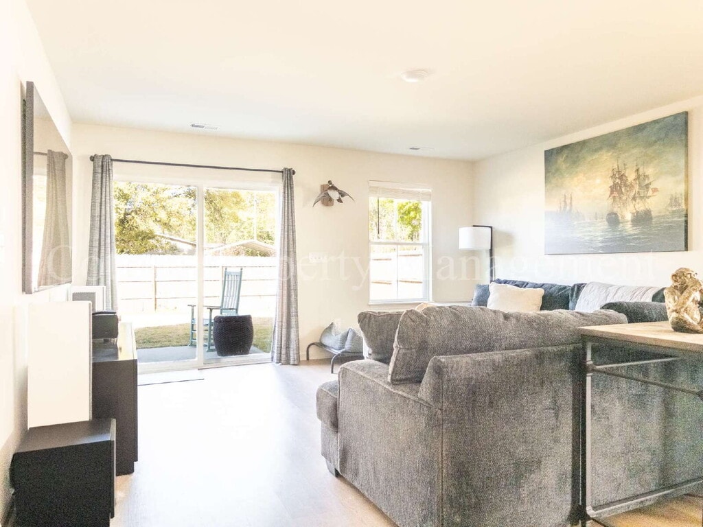 This beautiful home is adorned with luxury vinyl flooring throughout the living areas and plush carpeting in the bedrooms. The open floor plan creates a seamless flow from the living room to the kitchen. The kitchen boasts a large, center island, granite counter tops, stainless steel appliances, smooth top range and tile backsplash. The primary bedroom boasts walk in closet and dual vanity sinks with stunning countertops. The fully fenced backyard provides a serene outdoor space for enjoying the Carolina sunshine. Don't miss the opportunity to make this "Day Dream" your new home! Solar panels may help reduce those electric bills. *Pet friendly - (2) Pet limit with applicable pet fees and pet rent. Professionally Managed by Cotton Property Management, representing the homeowner.Luxury Vinyl Flooring