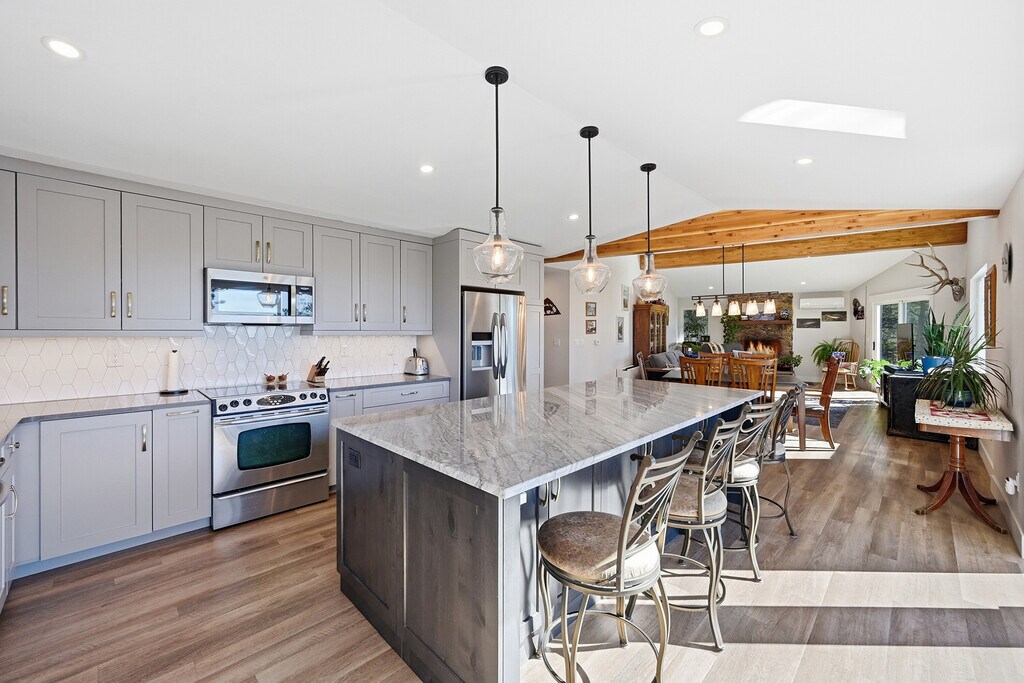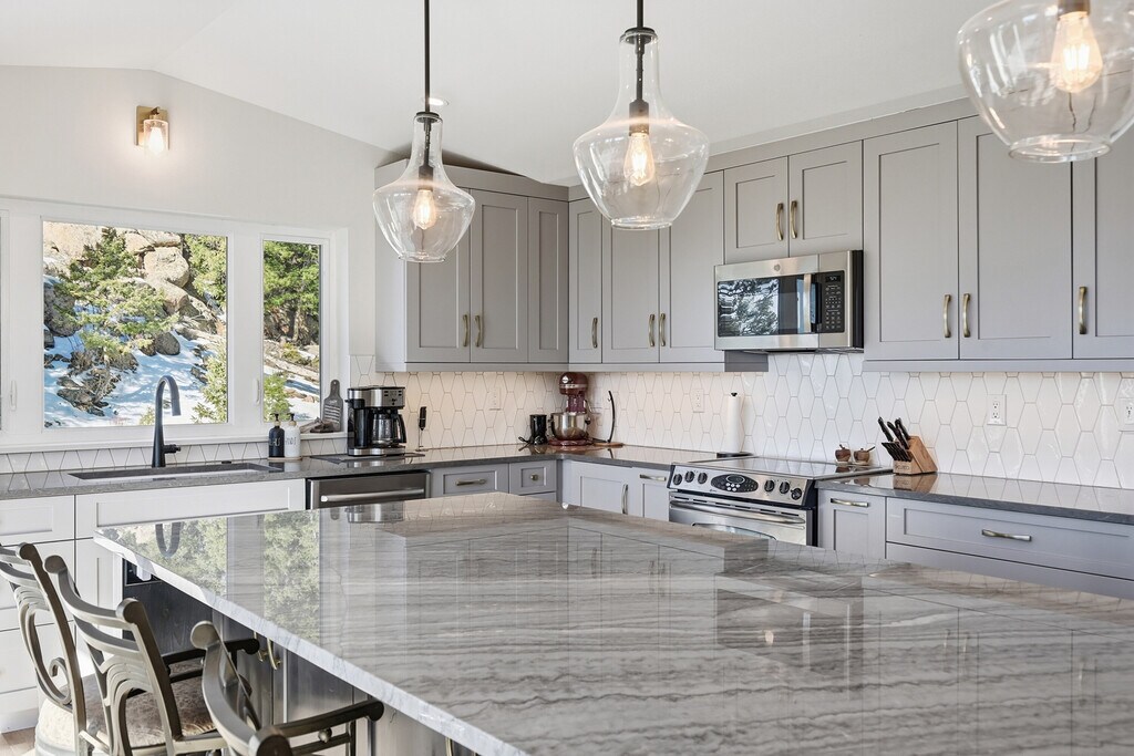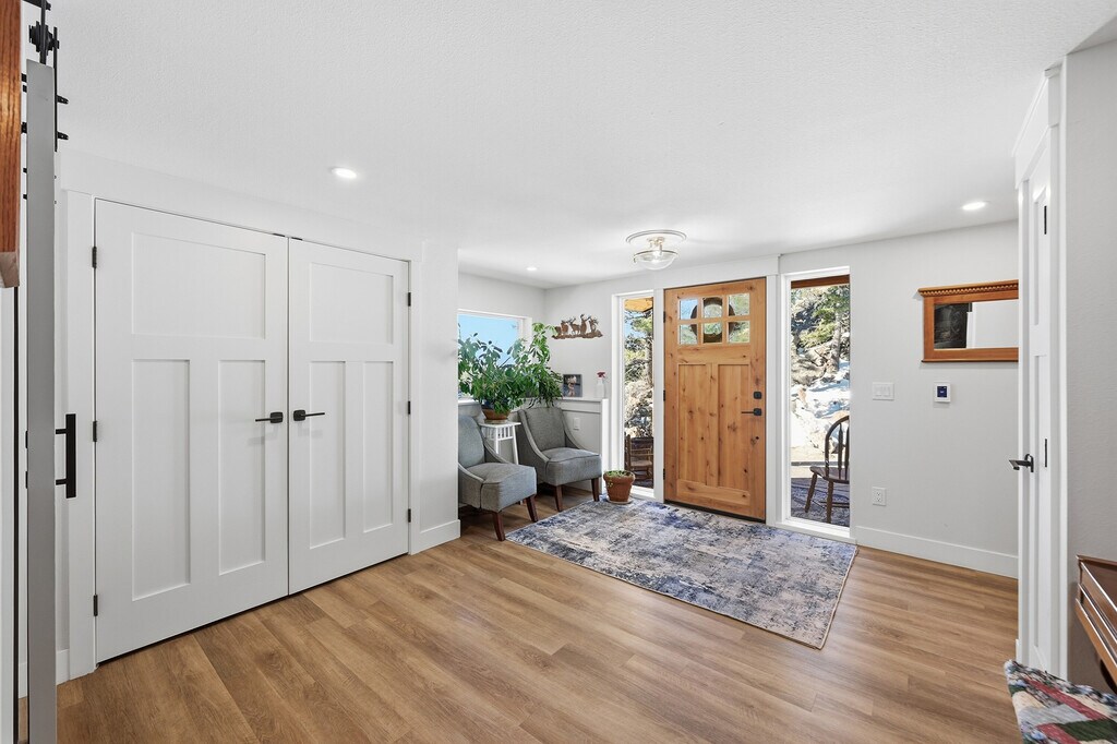 Manor House Properties- Welcome to this beautifully updated, furnished home surrounded by peaceful mountain and forest views. This home offers a quiet retreat while still being within a short drive of outdoor recreation and local amenities. It features 2 bedrooms, 2 full bathrooms, and approximately 1,686 square feet of living space. Inside you'll find a bright and inviting layout with beautiful flooring, vaulted ceilings with beams, and a cozy stone fireplace in the spacious living room. The updated kitchen includes stainless steel appliances, stunning stone countertops, and a large island that opens to a dining area filled with natural light and beautiful mountain views. A large wrap-around deck provides the perfect place to relax and enjoy the surrounding Colorado scenery. This rental is for the furnished upper level only and includes one garage parking space. It features an electric fireplace on the main level for winter comfort. Electric and water included. Tenant responsible for internet and trash. TENANT HAS THE RIGHT TO PROVIDE A PORTABLE SCREENING REPORT IF LESS THAN 30 DAYS OLD. This rental is the upper level only. Available for an 8-month lease term. No Smoking. Pets negotiable. First, Last and Security Due.