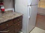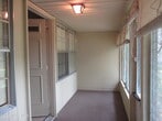 Greenbriar Model with rear door from parking. It has enclosed front screened porch with a storage closet. Newer counter and sink in kitchen. It has upgraded stainless sink,dishwasher,stove & fridge. The dining area is large,large open living room with closet. The bath has vanity,toilet and tub/shower combo. Laundry with washer & air handler. The primary bedroom is large with closet 1/2 has dryer on one side and clothes hanging on other side. Guest bedroom has large closet and rear door to parking. Become a resident and enjoy all the amenities of the Village.