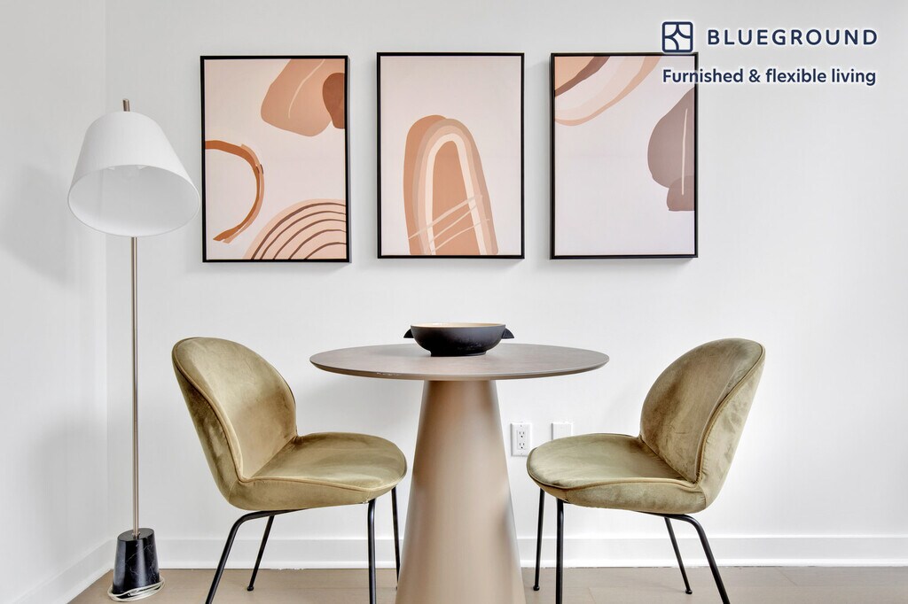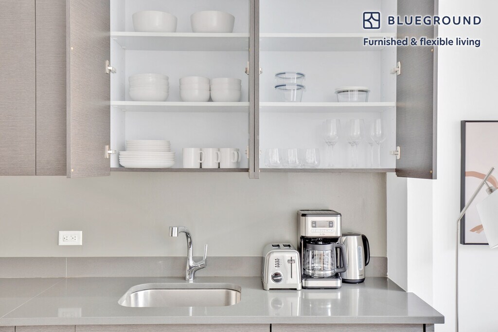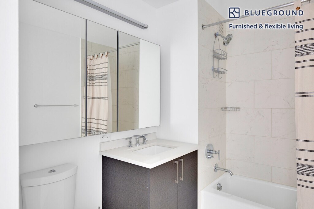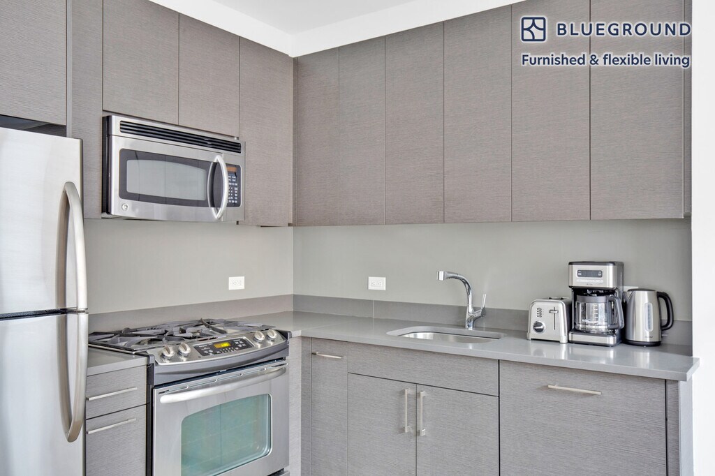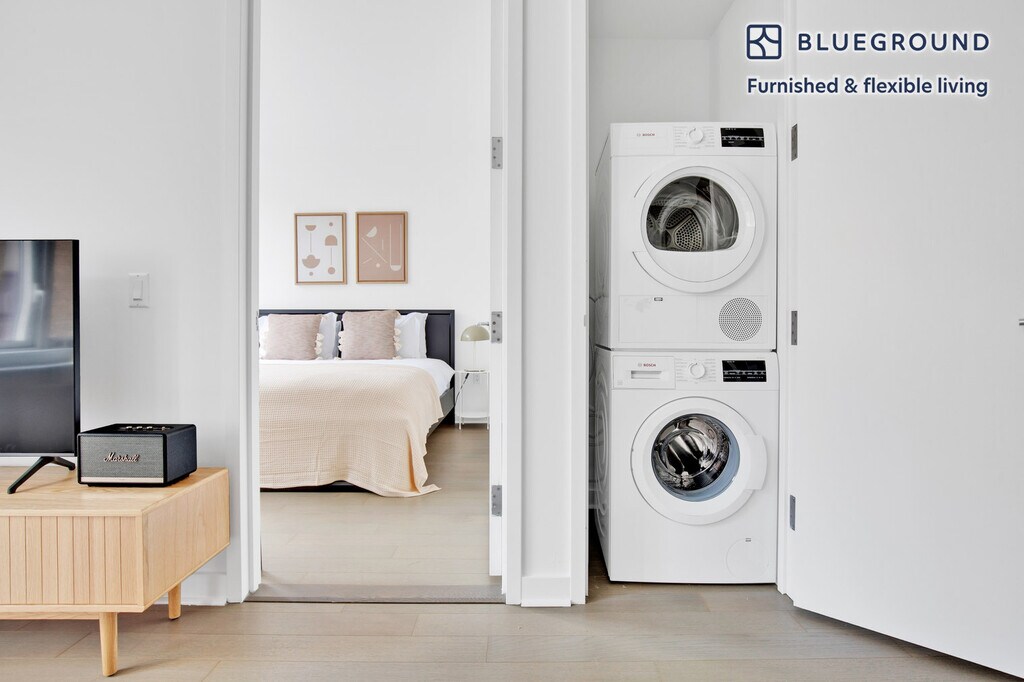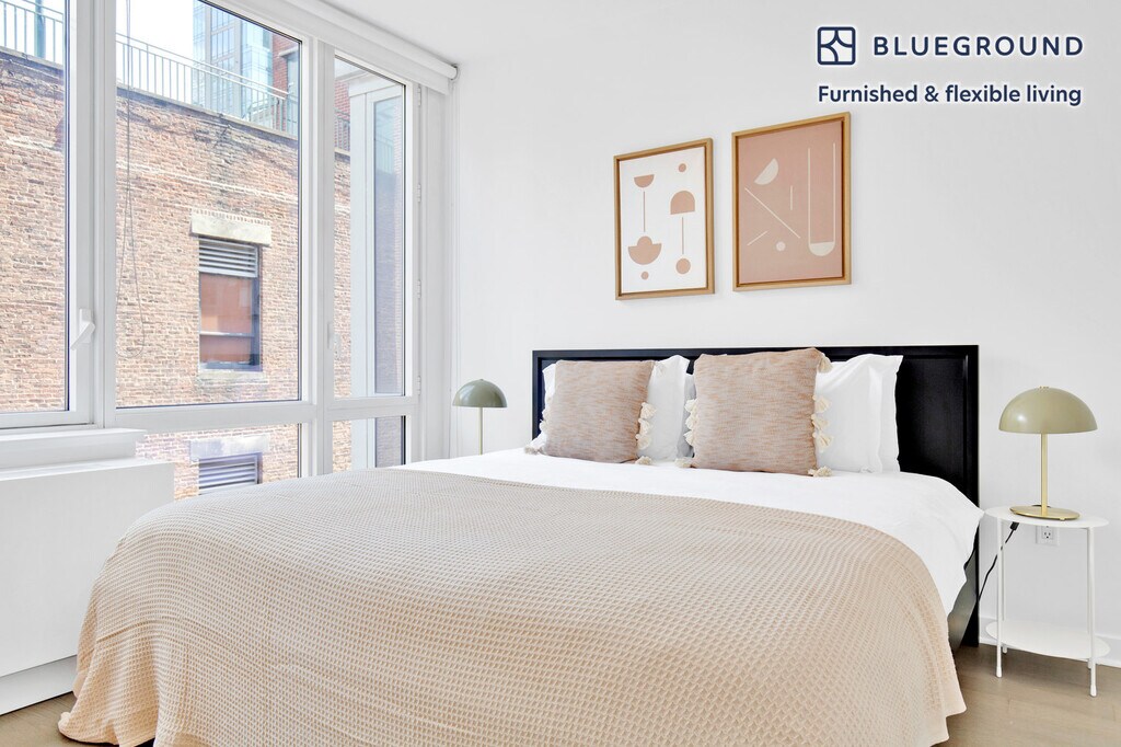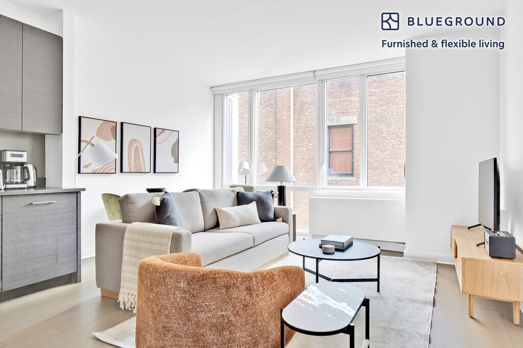 Feel at home wherever you choose to live with Blueground. You’ll love this bright Midtown South furnished one bedroom apartment with its modern decor, fully equipped kitchen, and exquisite living room. Ideally located, you’re close to all the best that New York has to offer! (ID #NYC875) The advertised rate of $5,480/month is the lowest available price, based on a 1 month(s) and 29 day(s) stay with a move-in date of February 1, 2026. If you’re looking for a 1-year stay, the rate is $7,850/month. Rates vary depending on the duration of stay, season, and other parameters. For exact pricing and additional pricing components, please visit our website and enter your desired move-in and move-out dates. The rate is applicable when billed upfront; it can be higher if billed in multiple payments. Brokers are welcome to reach out. Were you looking for an unfurnished lease? Try Blueground instead and upgrade from unfurnished to furnished living: - Furnished at rates comparable to unfurnished - No setup or furniture costs - save thousands - Move-in ready - save time, just bring your suitcase Designed with you in mind Thoughtfully designed with bespoke finishes, modern furnishings, and a fully equipped kitchen, you’ll enjoy that “I’m home” feeling with this Blueground apartment. Whether you’re lounging in your bright living room streaming the latest and greatest entertainment on the smart TV or premium wireless speaker, or getting some well-earned rest on the superior quality mattress with luxury linens, you’ll fall in love with everything this Midtown South apartment has to offer. This apartment also offers in-apartment laundry. Sleeping arrangements King Bed, 70.8in/180cm Amenities Building amenities unique to this one bedroom apartment include an on-site: - Basketball Court - Doorman - Dryer - Elevator - Washing machine - Pets allowed - Rooftop BBQ Arrival and ongoing support The entire apartment is yours to enjoy! Throughout your stay, you’ll have access to our Client Experience team through the Blueground App. You can schedule additional cleanings, submit maintenance requests, and view our neighborhood recommendations with just a few taps. We’ll share all details upon confirmation of your stay. Ideally Located This furnished apartment is located in Midtown South, the city’s high tech sector. Midtown South is generally used to refer to the portion of Midtown that is below 42nd Street. This central location allows residents to be just a short walk or ride away from some of the city's most famous landmarks and institutions. For instance, the Main Branch of the New York Public Library and the iconic Empire State Building. For a breath of fresh air, visit Bryant Park - known as Manhattan’s Town Square. The gorgeous residential high-rises in this neighborhood offer spectacular city views. Other things to note Building amenities may have an extra cost. This Blueground apartment has flexible lease options, allowing you to book it for one month, a year, or more. Pets are welcome, though weight limits and breed restrictions apply and may incur fees. Brokes CYOF. We take great pride in ensuring every photo displayed is shot in our own units with our actual furnishings. That said, we regularly refresh our decor and furniture arrangement, which may differ from what’s pictured. [SI]