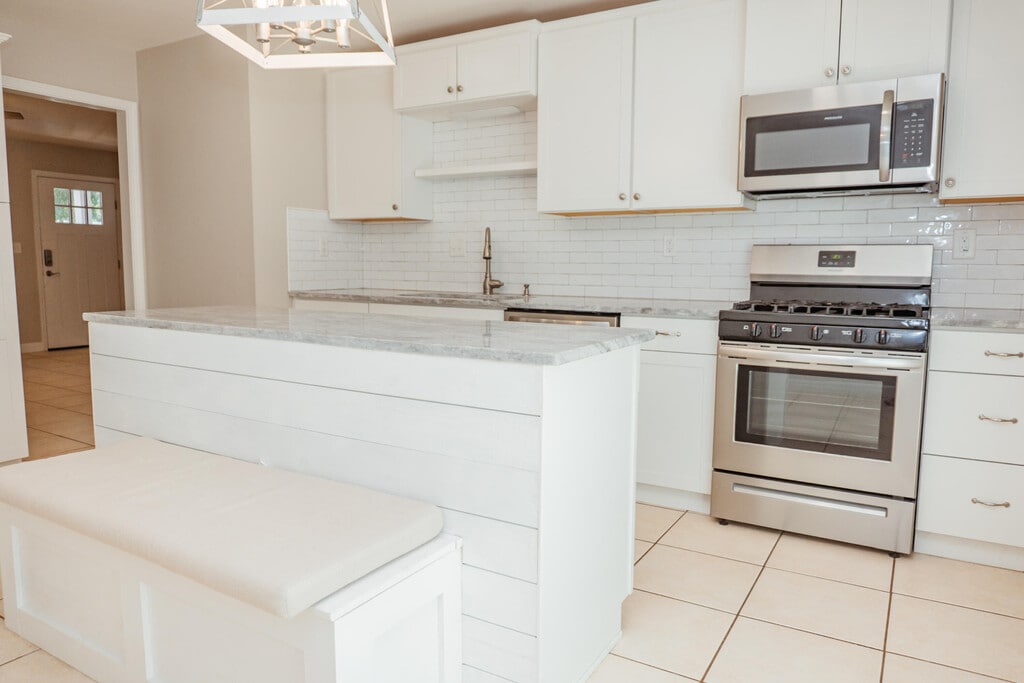 Available Now...Immaculate and beautiful 4-bedroom 2 bath located in South Crestview. Recently renovated kitchen has nice white cabinets, granite, kitchen island, and built in bench in the eat in kitchen area with ship lap accents. Stainless appliance package with natural gas stove. Newer paint features natural and neutral tones in the home. The white cabinets and granite counters are carried through to the bathrooms. Tile flooring in the home, open back deck, spacious back yard with privacy fence. No inside smoking or vaping. Pets allowed with owner approval and pet fee. Oversized driveway and yard building. South Crestview convenience with easy access to bases, beaches and shopping.