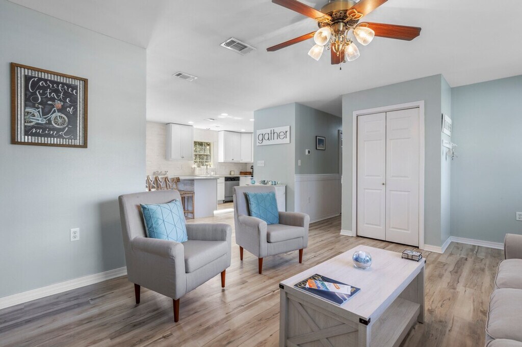 The advertised rate of $4,818/month is the lowest available price, based on a 1 month(s) stay with a move-in date of April 18, 2026. Rates vary depending on the duration of stay, season, and other parameters. For exact pricing and additional pricing components, please visit our website and enter your desired move-in and move-out dates. The rate is applicable when billed upfront; it can be higher if billed in multiple payments. Escape to this charming 3-bedroom, 2-bathroom coastal retreat in Bay St. Louis, MS, and feel at home. This modern, elevated home comfortably sleeps 6 and is accessible via a flight of stairs. This cozy home features a bright and airy interior with cheerful, beach-themed decor. The open living and dining area provides a welcoming space for your group to gather. Prepare your favorite meals in the modern, fully equipped kitchen. Beneath the house, you'll discover an inviting outdoor dining and lounge area, perfect for enjoying the coastal atmosphere. The golf cart is available for rent. Please let us know if you would like to add it to your stay! Perfectly located near downtown shops and restaurants, this home is just a stone's throw from beautiful Gulf Coast beaches. The ground level features a fantastic covered outdoor lounge and dining space, which is a highlight of the property. We encourage you to take full advantage of this unique area to relax and enjoy the coastal breeze. [SI]