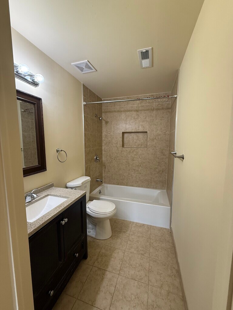 Beautifully updated 2-bedroom, 2-bathroom apartment in Plainsboro, NJ. Move-in ready with brand-new luxury vinyl plank flooring throughout the living area, designer wood slat accent wall with track lighting, and sliding glass door to a private balcony. Renovated primary bathroom features elegant marble-look tile surround, modern gray vanity, and quartz countertop. Galley kitchen with stainless steel appliances (refrigerator, stove, microwave, dishwasher), granite-look countertops, and oak cabinetry with pass-through window to the dining area. Both bedrooms have hardwood floors and ceiling fans. Spacious walk-in closet with built-in shelving. In-unit stacked washer/dryer. Dedicated parking included. Home warranty services provided by Varma Properties covering all appliances, electrical systems, and plumbing — $50 service fee per request. Tenant responsible for general upkeep. Minutes from Route 1, Princeton University, and top-rated West Windsor-Plainsboro schools. Pet-friendly with written approval (1 pet max per HOA). $2,400/mo | $3,600 security deposit | 12-month lease