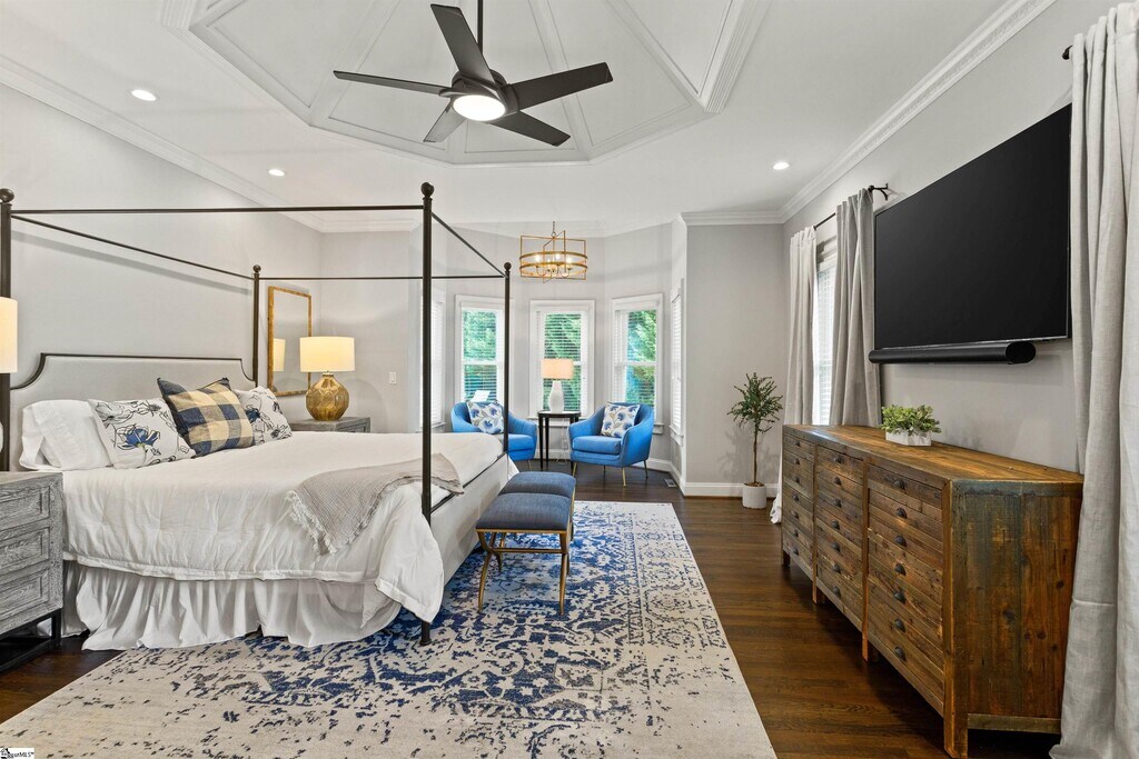 *Luxury Long-Term Rental in Stonebrook Farm, Greenville!* Discover your secluded, fully furnished entertainment retreat in the gated community of Stonebrook Farm on Greenville's Eastside. This meticulously updated 5-bedroom, 4.5-bathroom $1M+ custom brick residence seamlessly blends indoor and outdoor living, featuring a saltwater pool with new liner, pump, and lights, set against a Belgard pavers deck. The modern and cozy furnishings will make you feel at home from day one. As you approach via the circular drive, the freshly painted brick exterior and charming covered front porch welcome you. The 2-story entry leads to a private study, an elegant living room, and a spacious dining room perfect for hosting. The nearby powder room is enhanced by a backlit mirror. The heart of the home is a bright gourmet kitchen with striking white quartz countertops and backsplash, stainless steel appliances, a gas cooktop, walk-in pantry, sunlit breakfast room, and ample cabinetry. The kitchen flows into a magnificent 2-story great room with a gas fireplace. Adjacent is a vaulted media room with a sectional sofa, wet bar, built-in cabinets, and three wall-mounted flat screen TVs—perfect for entertaining. A guest bedroom with an ensuite bath and walk-in closet, a remodeled laundry room with Samsung washer and dryer, and access to the side-entry garage complete this wing of the home. The expansive primary suite, located on the opposite side of the house, ensures peace and privacy. A turret ceiling, bay window sitting area, wall-mounted flat screen TV with Sonos soundbar, and spa-inspired master bath with soaking tub, glass-enclosed tiled shower, and remodeled walk-in closet make this suite a luxurious retreat. Upstairs, a scenic overlook provides views of the great room below. A second primary bedroom with ensuite bath and walk-in closet is on one side, while two additional bedrooms—one with a queen bed, the other set up as a den/playroom—share a full bath on the other side. Outside, the screened porch with Italian tile flooring and 50 wall-mounted TV provides ample seating and dining space, leading to a covered porch and brick patio that provide the perfect setting for alfresco dining and lounging. The private backyard features a beautiful saltwater pool surrounded by mature landscaping, including camellias, hydrangeas, azaleas, and more, attracting butterflies and hummingbirds. Numerous updates include fresh exterior paint, refinished hardwood floors, new lighting, remodeled laundry room and primary closet, updated HVAC systems and ductwork, and a roof replacement in 2016. The property also has ample parking, a spacious garage, and outdoor storage. Stonebrook Farm amenities include an updated clubhouse, swimming pool, tennis courts, playground, nature trail, lake, and sidewalks. Nearby award-winning schools include Oakview Elementary, Riverside Middle, JL Mann High School, Southside Christian, and more. Convenient access to GSP Airport, I-85, I-385, and local amenities enhances the appeal of this remarkable property. Schedule your private showing today! *Appraiser’s measurement 4,145 sq ft.* Owner prefers minimum 2-year lease agreement."