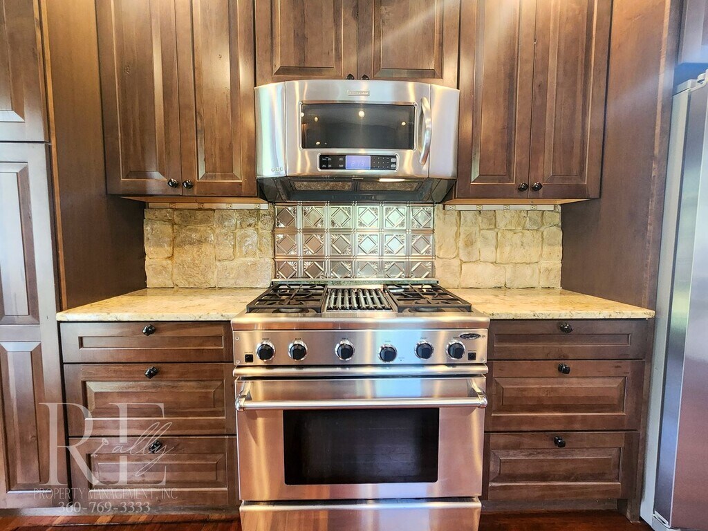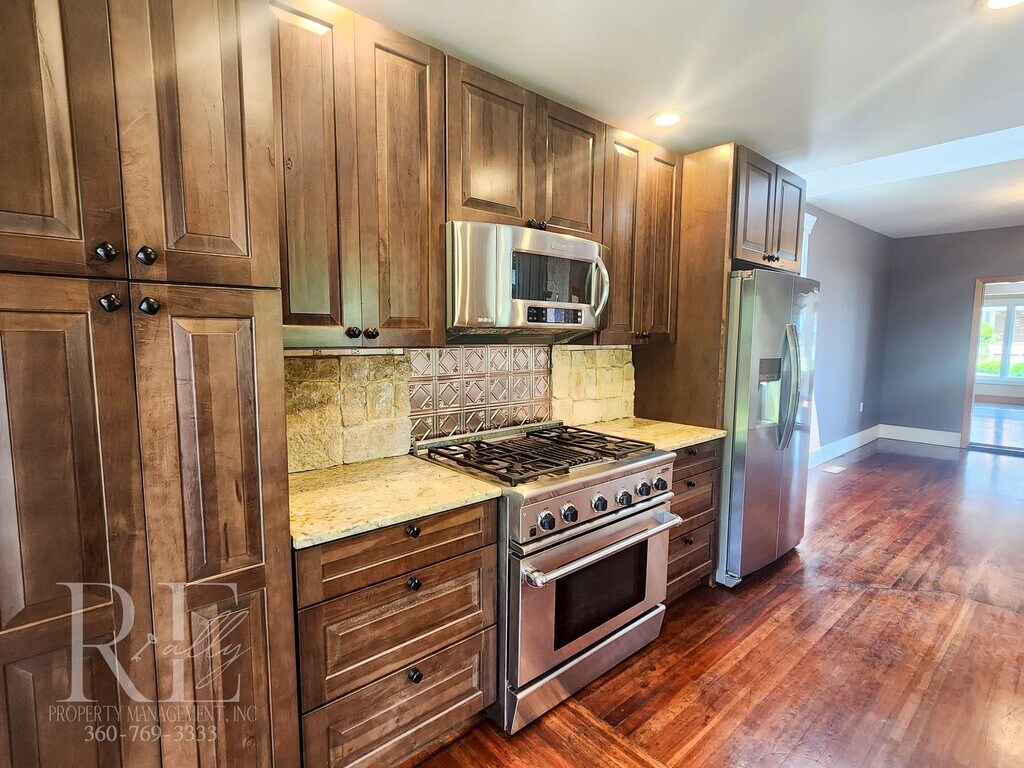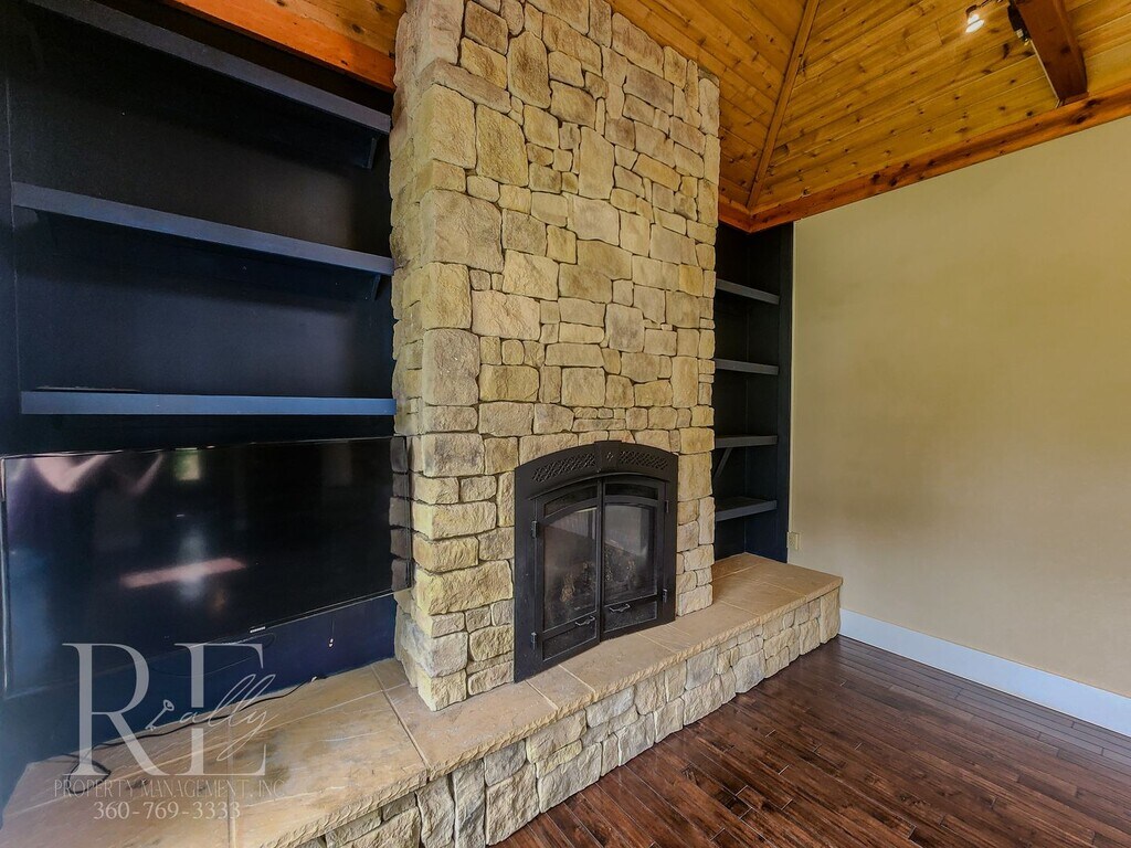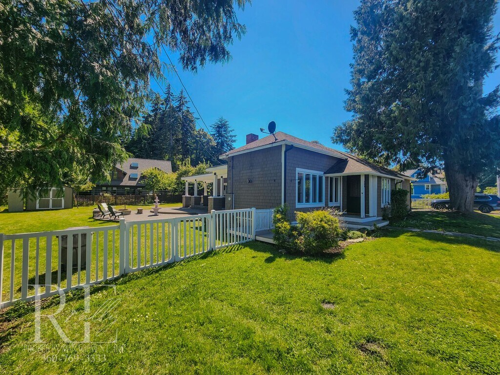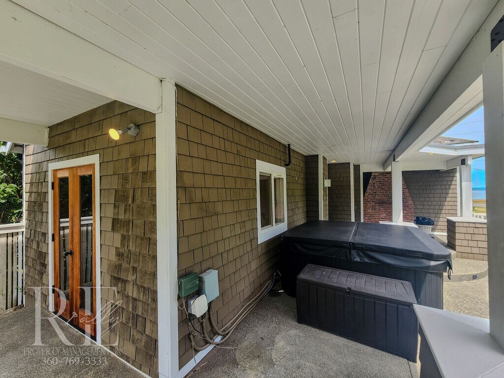 Waterview Haven is across the street from Fort Warden. It offers stunning views of Admiralty Inlet and the lighthouse point. Spend your days ensconced in this luxurious retreat, letting the stress of the rest of the world fade away. Within a 10-minute drive to the hospital, and only 5-minutes away from downtown Port Townsend shops and dining. Expertly recrafted with modern touches while tastefully incorporating the original 1900s craftsmanship. The impressive tongue-in-groove vaulted living room devours the view with a full wall of windows facing the water, offset by floor-to-ceiling stone fireplace surround and built-ins, with a pre-installed TV for your pleasure. Skylights throughout bring the light in. Gourmet cook or not, this kitchen will quickly become one of your favorite spots. High-end custom soft close cabinets adorned with granite counters and stone backsplash. Premium stainless gas 32" range, microwave, and fridge, dishwasher. Choose your ambiance, gas fireplace in the dining space, doors to the covered outdoor patio, view of the pond water feature, or TV mount... all designed for ultimate comfort. Outdoors, off the kitchen, is a peaceful oasis. Under the protection of a covered patio is a hot tub, cleaned and ready for use, with views of the water. The large patio beyond is a fabulous entertaining space with a fountain feature and firepit. A sprinkler system will keep your yard pride-worthy year-round (water included). One bedroom takes in the views so you can wake up and go to sleep with a centering appreciation of this spectacular region we live in. The 2nd bedroom has built-in bookshelves and a walk-in closet. The bathroom is tastefully remodeled with a full tile backsplash and a jetted spa tub. Storage space can be found in the mostly finished basement and outside storage shed. Off-street parking. Managed by REally Property Management, Inc. Offering flexible lease term lengths. Tenant responsible for power & propane. Trash, water, sewer, and yard care are included. We require only 1st month to move in. Now offering NO up-front security deposit to those who qualify! If tenant does not qualify or wish to participate, deposit is equal to one month’s rent due at move in. $50 application fee per person, must apply on RPM web site www , re ally pm , c o m. We do not accept comprehensive reusable reports or Zillow apps. No smoking in home. Dogs okay with screening and approval, $450 pet fee per pet, limit 2. Available Mid November, call for details. Currently occupied. Virtual Tour: