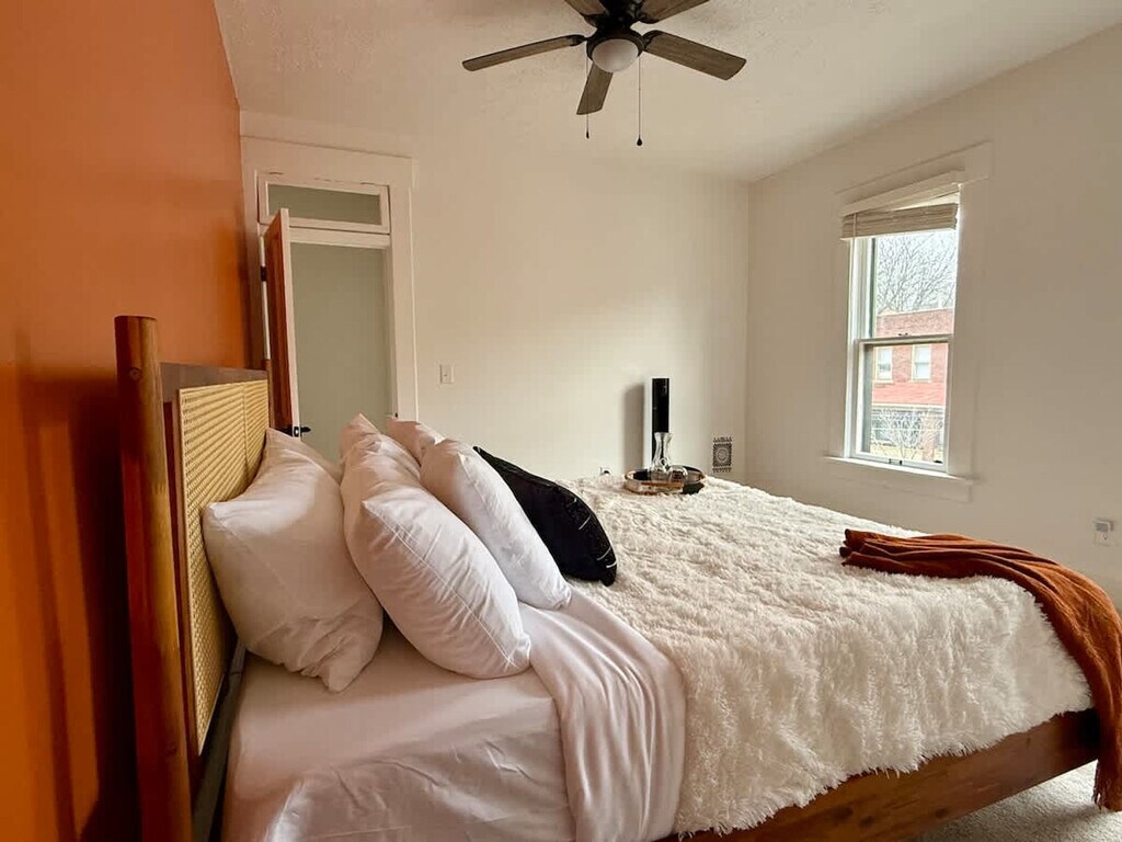 Feel at home in this 4-bedroom townhome in Columbus, perfect for families, business travelers, and groups looking for a comfortable and stylish stay near Downtown Columbus, the Short North, and the Columbus Convention Center. This home is filled with gorgeous rare plants, upscale decor, and original hardwood floors. It features a fully equipped kitchen with high-end appliances, quartz countertops, and your new favorite coffee, as well as 1.5 bathrooms with complimentary toiletries. Enjoy access to a Smart TV, free Wi-Fi, a dedicated workspace, and an accent wall. Tower fans and white noise machines are provided for light sleepers. The first floor includes a fully equipped kitchen, a dining area, a cozy living room, a Smart TV, and a half bathroom. The second floor features two bedrooms each with a king-size bed and a full bathroom. The third floor includes one bedroom with a queen-size bed and another bedroom with two queen-size beds. This home offers street permit parking for one vehicle. If parking for additional cars is needed, the same street permit parking is available for $10 per additional vehicle for your entire stay. Pets are welcome for a fee of $40 per pet per night. The location could not be more perfect! There are so many great restaurants and bars right on North High Street to check out. This apartment is located a 5-minute walk to Short North District, less than 1 mile to Ohio State University campus and Kroger Food Market, a 4-minute drive (1.3 miles) to Greater Columbus Convention Center and Nationwide Arena Stadium, a 4-minute drive (1.4 miles) to Downtown Columbus area, an 8-minute drive to Nationwide Children's Hospital, a 10-minute drive to CMH Columbus John Glenn Airport, and a 15-minute drive to Easton Town Center Shopping Mall. There is easy access to all major highways (I-71, I-670, I-315) and COTA lines for getting around the city. Walking is the best way to enjoy Short North! Some city or neighbor noise is possible due to the centrally located downtown location and shared wall with the neighboring unit. Quiet hours are from 9 p.m. to 7 a.m. Breaking any of the house rules will result in a charge of $500 each, subject to a charge per occasion and per broken rule separately. Absolutely no plants in the home are to be moved for any reason. No loud music is allowed at any time. No parties, small gatherings, or events are allowed. No smoking, marijuana, firearms, illegal substances, or any illegal activity are allowed on the property; smoking is allowed outside the home only. No additional (unregistered) guests are allowed. Tampering with exterior surveillance, noise monitors, and smoke sensors will lead to immediate cancellation with no refund, as well as a $300 violation charge. Any late check-outs will result in an additional charge of $100. Includes high-speed internet. Registration Number: 20232028 [SI]