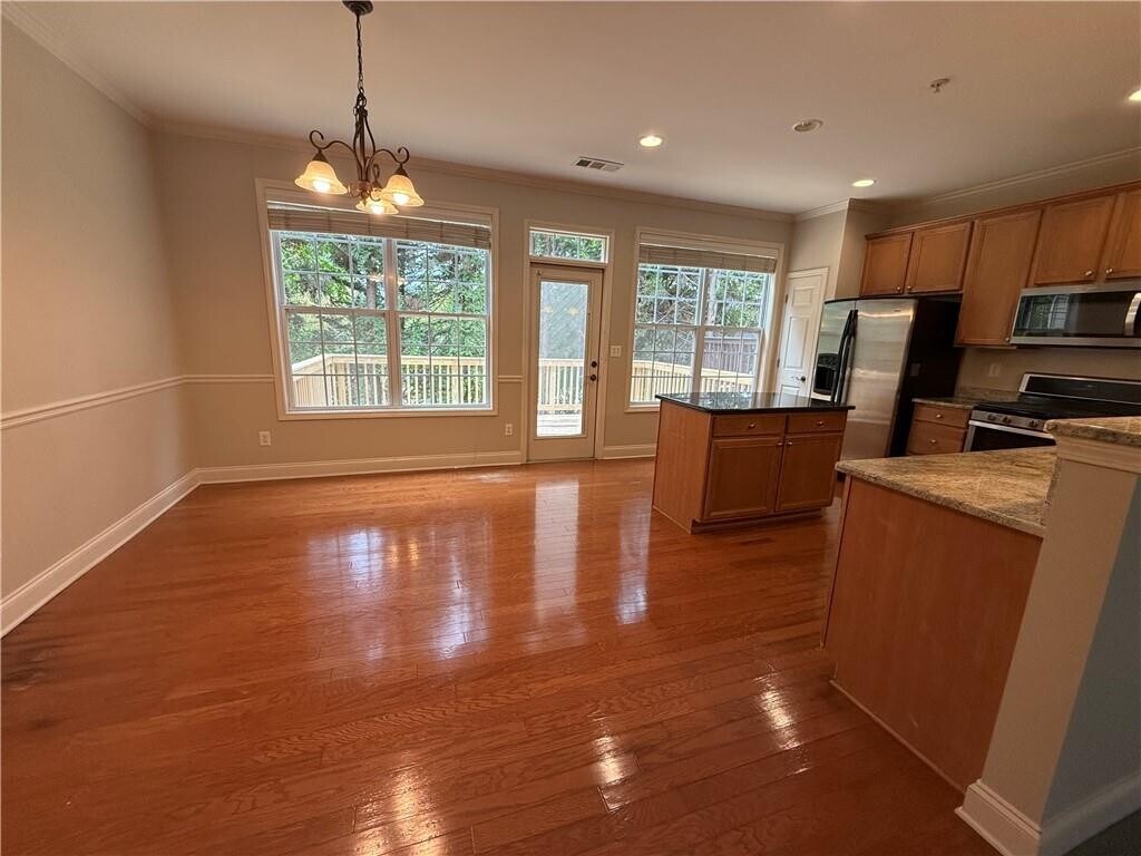 Charming 4 Bed/3.5 Bath townhouse will feel like home to families,couples,or roommates from the first visit. Large kitchen boasts granite countertops,stainless steel appliances,prep-island,and pantry. Deck steps right off the kitchen making it great for grilling or entertaining guests. Dining room separates the eat-in kitchen and cozy living room with new carpet and fresh paint. Marble fireplace is the focal point of the living space with convenient half bath on the main floor. Upstairs features vaulted ceilings,complete laundry room,three bedrooms/two baths including the Primary bedroom and ensuite with jetted garden tub,double vanity,and walk-in closet. The lower level houses a private suite with rear step out,garage access,and full bathroom. Minutes from schools,shopping,entertainment,highways,and the Marietta Square!