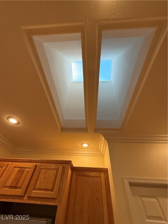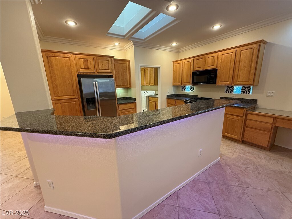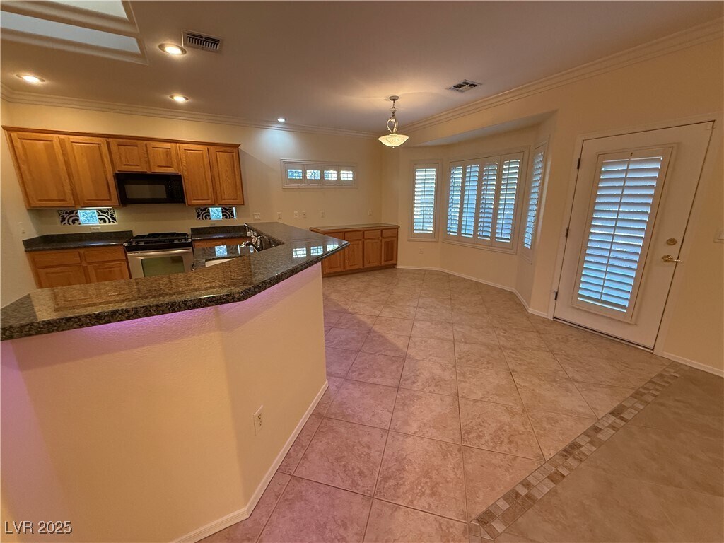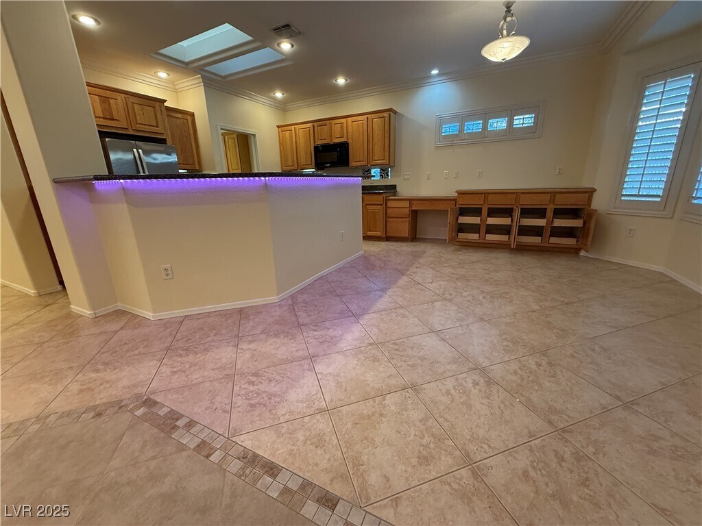 BEAUTIFUL home located in a cul-de-sac lot with no neighbors behind * OPEN floor plan with Tile floors and ceiling Crown Moulding throughout the home * 9 foot ceilings plus Vaulted ceilings with Skylights above the kitchen * The kitchen has upgraded cabinets with Pull-Out shelves, granite counters, reverse-osmosis water filter, and stainless steel appliances (the dishwasher & microwave will be replaced with new appliances) * Enjoy this home which has a front porch and a large backyard with an elevated deck in addition to your covered patio * Garage has water softener, ceiling racks, and garage cabinets, and an access door to front patio