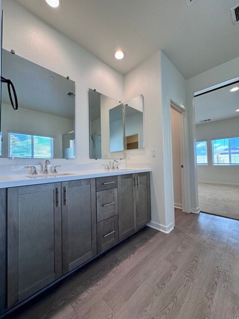 *To schedule a viewing and/or apply please visit our website at * This 2021 built single-story home with solar is a gem waiting to be discovered and is located on a cul de sac in the Meadows community of Winchester. Approaching the home, you are greeted by a well-manicured lawn, ample parking, and great curb appeal. Coming inside, you'll immediately notice the open and spacious floor plan, creating a welcoming and airy atmosphere. The entire common area and secondary bedrooms are adorned with Luxury Vinyl Plank flooring, combining elegance with durability, while the primary bedroom offers plush carpeting. The heart of the home is the stunning kitchen, designed to impress, boasting shaker style cabinets, quartz countertops, stainless steel appliances, and a generously sized pantry to ensure you have plenty of storage space for all your culinary needs. The kitchen flows seamlessly into the living room and dining area, making it a perfect place to entertain family and friends. The dining area features a sliding door that leads to the backyard, allowing for easy access to outdoor gatherings and fresh air. The primary bedroom is large with an abundance of natural lighting and has an attached bathroom, featuring a walk-in shower and a separate soaking tub, dual sinks, and a spacious walk-in closet for all your wardrobe needs. Laundry can be found directly across from the primary bedroom. The secondary bedrooms are well-proportioned, and two of them boast walk-in closets, providing ample storage. The third bedroom offers a closet with sliding doors. This home also offers a versatile den with a closet! The guest bathrooms are equipped with a shower and tub combination, one offers dual sinks while the other offers a single sink. The garage is not only spacious enough to accommodate two vehicles but also features built-in storage, helping you keep your belongings organized and is equipped with a Tesla charger, making it an excellent feature for electric vehicle owners! Heading outside to the backyard, you are greeted by an oasis of relaxation. The combination of concrete and artificial grass creates a low-maintenance and visually appealing landscape, plant and tree maintenance is INCLUDED. A covered patio area provides shade on sunny days, making it a perfect spot for outdoor dining or simply enjoying the breathtaking views of the surrounding mountains. Additionally, this home features a premium water softener, drinking water filtration AND alkaline system! Conveniently located near the 215 fwy, shopping, dining and more! *All Magnum Property Management residents are enrolled in the Resident Benefits Package (RBP) for $34.95/month which includes renters insurance, credit building to help boost your credit score with timely rent payments, $1M Identity Protection, HVAC air filter delivery (for applicable properties), move-in concierge service making utility connection and home service setup a breeze during your move-in, our best-in-class resident rewards program, and much more! More details upon application. ** LEASE TERMS: • 12 month lease term. • Security deposit $3,199 • $50 per adult (18+) to apply • Pet screening required for ALL applicants. If applicant does not have an animal, there will be no charge. • Small dog 25lbs or less ONLY, no large dogs, no cats. • Pet rent to be applied in the amount of $40/month per Owner Approved Pet • Tenants pay all utilities including monthly solar equipment charge of $100 • Plants and tree maintenance INCLUDED • Security system INCLUDED • Refrigerator, Washer & Dryer are NOT included • Tenant to maintain Water Softener, Kitchen undersink reverse osmosis filtration and Alkaline water system • Resident Benefit Package (RBP) $34.95 • Renters insurance required. *included in RBP* Pet coverage is NOT included in RBP and will be an additional charge • Strictly, No Smoking in the House *To schedule a viewing and/or apply please visit our website at *