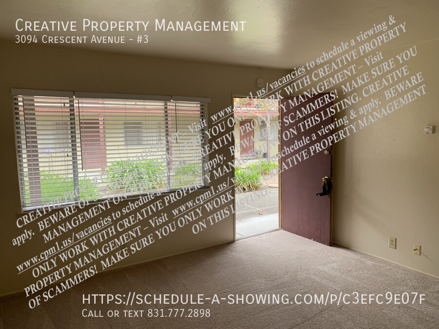 All showings are self-showing - schedule on-line thru or website cpm1.us Schedule an appointment between 8:30am and 6:30pm daily Cozy and charming 1-bedroom, 1-bathroom apartment located on the ground floor of a quaint apartment complex. This delightful abode offers the convenience of a shared laundry facility, with its downstairs location, you'll enjoy easy access and the added bonus of not having to climb stairs after a long day. This lovely apartment is perfect for those seeking a comfortable and convenient living space in a friendly community. Located near HWY1, DLI, MPS, NPS, CSUMB, VA, minutes away from to Marina Beach, restaurants and shopping center and much more. Deposit $1,745 No Pets, No Dogs, No Cats No Smoking No Co-signer's