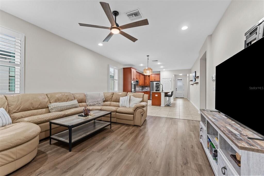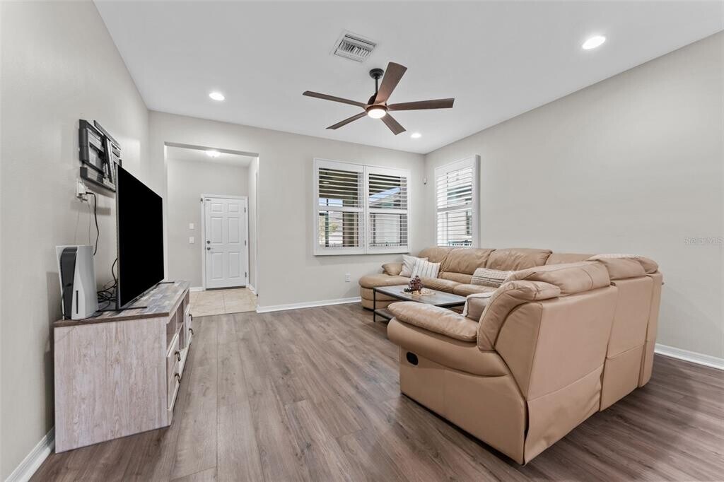 Luxury Move-In Ready Rental in Starkey Ranch – Steps to Resort-Style Amenities!Beautifully maintained 3-bedroom,2-bath single-story home with flex space located in the heart of Starkey Ranch’s Whitfield Park—just steps from the pool,park,playground,and K-8 Magnet School. Situated across from a tranquil pond,this home offers an ideal blend of comfort,style,and convenience. Featuring an open-concept floor plan with no carpet,the home includes engineered hardwood,laminate flooring in bedrooms,and ceramic tile in main living areas. The upgraded chef’s kitchen boasts granite countertops,stone backsplash,42” shaker cabinetry,stainless steel appliances,gas range,double ovens,and a large island—perfect for entertaining. The private primary suite offers a spa-like bath with a frameless walk-in shower,dual vanities,and an oversized walk-in closet. Enjoy outdoor living on the screened,covered lanai overlooking a fully fenced,low-maintenance yard. Additional features include ceiling fans throughout,a water softener,a utility sink,garage storage,and a 2-car rear-entry garage with a paver driveway. Starkey Ranch residents enjoy three resort-style pools,scenic trails,parks,shopping,dining,Publix,and easy access to beaches and Tampa International Airport. A rare opportunity for luxury rental living in one of Tampa Bay’s premier master-planned communities. MLS# TB8470348