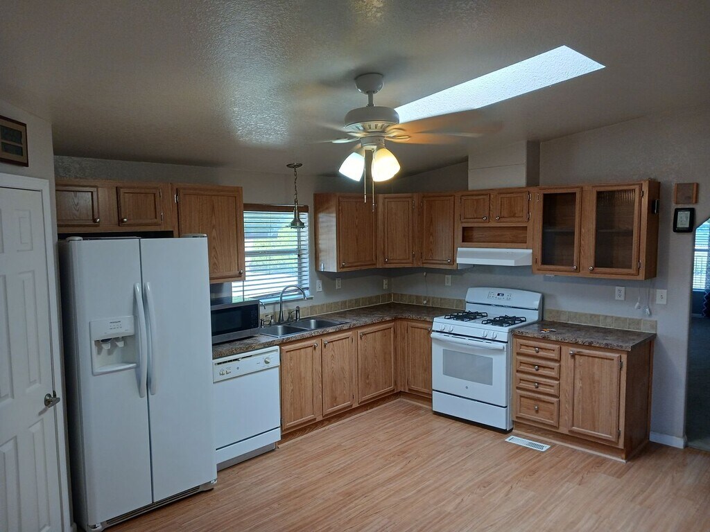 Welcome home to this well kept 3 bedroom, 2 bath ground set mobile with a large yard. This property is clean and well kept and move in ready. It features drive thru gates, storage sheds, front and back porches and lovely landscaping. Inside you will find a well appointed kitchen with a gas stove and a refrigerator. Cozy living area and master bedroom with carpeting. Window coverings and some drapes make this place feel homey. The laundry room comes with a washer and dryer. This home has a guest bath with a tub and the master with a shower. Come view this lovely place today. Pets may be considered. Owners will have to approve so call the office to make sure before applying online. Security Deposit: $1500 Non-refundable cleaning fee: $350 Lease Admin Fee: 1.5% Monthly