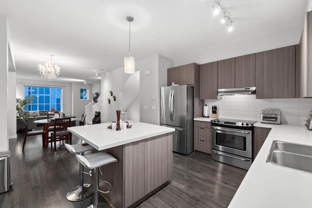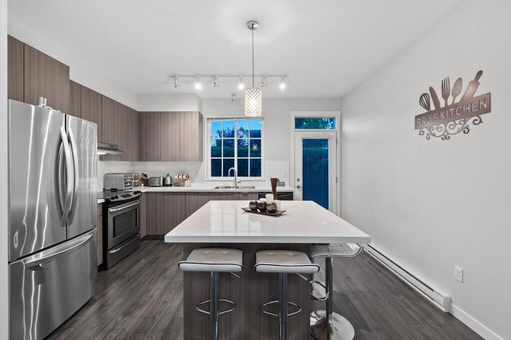 Luxurious, like new, and exceptionally spacious; welcome to this beautiful 2 bedroom, 2 bathroom townhome built by award winning developer Polygon, located in the Brighton community at Westerleigh in the heart of West Abbotsford. This thoughtfully designed home features a bright open layout with large windows, laminate flooring, and a modern kitchen complete with custom crafted cabinetry, sleek stainless steel appliances, engineered stone countertops, and a full height tile backsplash. Step outside to your private deck backing onto a peaceful greenbelt and trail, creating a quiet and relaxing outdoor space. Residents enjoy access to Club West, a resort inspired clubhouse offering an outdoor pool, gym, guest suite, and social amenities exclusive to Westerleigh. Conveniently located just minutes from parks, schools, College, Discovery Trail, Highstreet Shopping Centre, restaurants, and quick freeway access; this home offers the ideal blend of comfort and convenience for families and professionals alike. Suite Features: - 2 Bedrooms - 2 Bathrooms - Modern kitchen with stainless steel appliances - Laminate flooring throughout - Large windows with natural light - Private deck backing onto greenbelt - Spa style shower with glass doors - In suite laundry - Garage parking - Access to clubhouse amenities including pool and fitness centre - Utilities extra Lease Terms: - Damage deposit: 50% of monthly rent - Utilities to be placed in tenant names - Pets subject to owner approval; pet deposit applies - No smoking - Available immediately - One year lease with month to month thereafter Near by: - Rick Hansen Secondary School - Eugene Riemer Middle School - Harry Sayers Elementary - Bolt Fitness - Daycares - Physio - And much more! Professionally marketed by Sanveer Gill, Licensed Property Manager. Century 21 Coastal Realty Ltd.