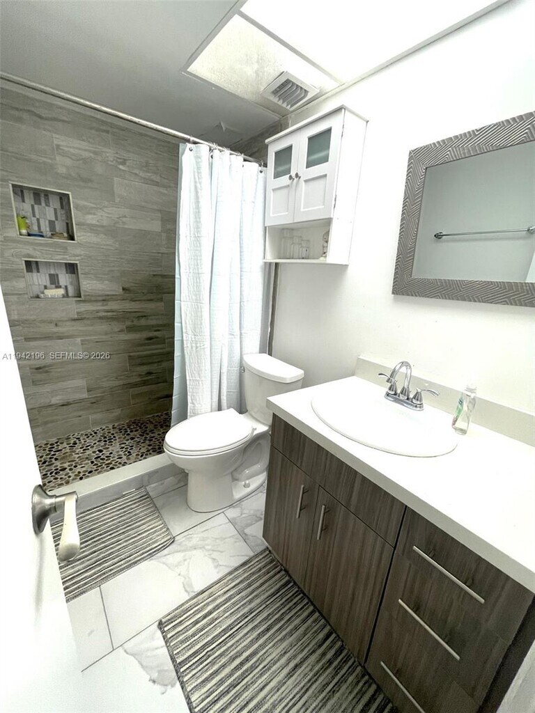 Renovated condo with tile throughout, great open kitchen with SS appliances, newer bathrooms. Spacious bedroom with walk-in closet. Enclosed tile balcony with great views. The unit is located close to the elevator and has been painted. The building has a newer roof and elevator and laundry per floor. The community has a Pool and Gym. One parking space assigned and extra spaces. Maximum occupants 2, one has to be 55+ and second has to be 18 or older. Move In ready!!! MLS # A11942196