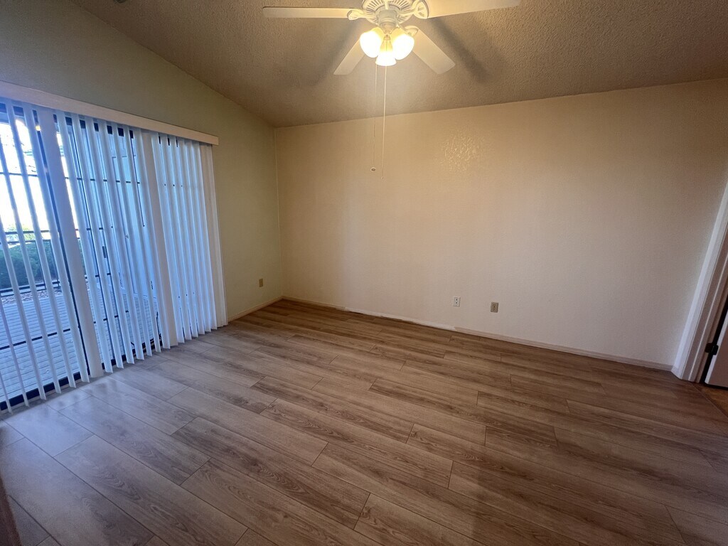 This two-bedroom, two-bathroom home features a desirable split floor plan, with each bedroom offering its own private bathroom for added comfort and privacy. The primary bedroom includes a glass slider that opens to a covered deck, creating an inviting indoor-outdoor living space. The kitchen opens to the living and dining areas and is complemented by a gas fireplace that adds warmth and character. A washer and dryer are conveniently located in the unit, and water, sewer, and trash are included in the rent. Parking includes one assigned covered space along with an additional unassigned uncovered space. The property is conveniently situated near Embry-Riddle, shopping, restaurants, and the hospital.