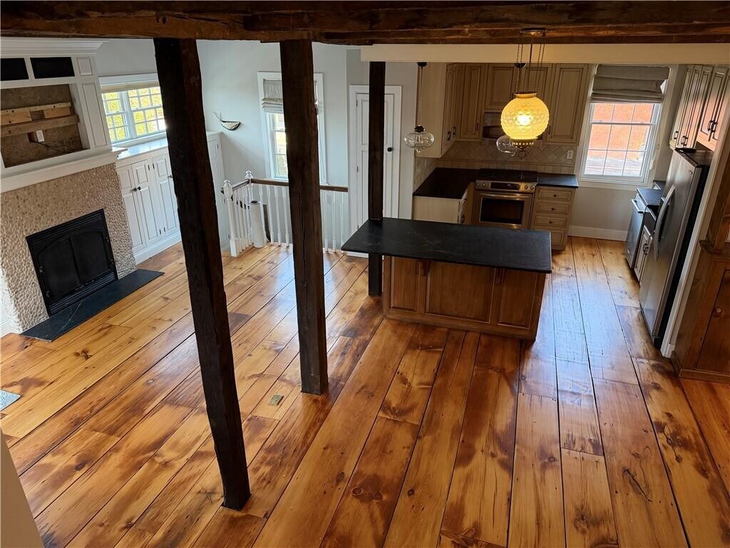 31 Bradford St in the heart of Downtown Bristol. This spacious 2 large bed 2 full bath apartment also boasts loft space which could be used as a possible bedroom/ work from home office space. Located within walking distance of local shops,restaurants,library,post office,east bay bike path etc. 2 off street parking spaces. Located on second floor. Available now. MLS ID 1402030