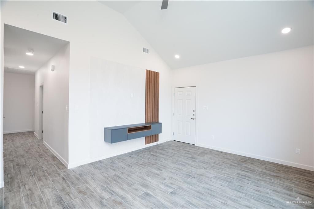 Brand new spacious modern open concept 3 bedroom 2 full bath apartment. With a great location between Shary Rd and Glasscock,Sharyland ISD,close to shopping and restaurants,this unit comes fully equipped with appliances,including a refrigerator,stove,microwave,washer,custom built ins,TV wall mount,synthetic grass on your back and unbelievable spacious back patio,and your carport is ready for your own electric car charger!!!! Look no further,you will be amazed with its soothing paint color and architectural design. Call to schedule your private showing