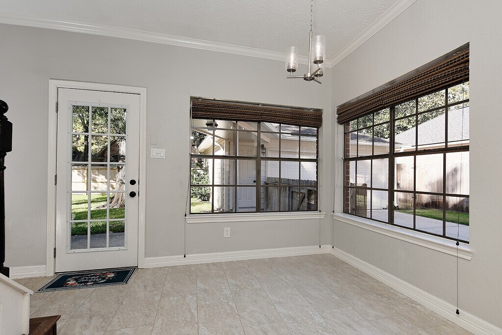 Beautiful three bedroom home for lease with large fenced yard in Cochran's Crossing! Impeccably kept,neutral interior paint,crown moulding,abundant windows,carpet,hardwood and tile floors. Spacious kitchen with granite counters,convection oven and breakfast bar (washer/dryer/fridge included) opens to sunny breakfast room; formal dining opens to den with gas log fireplace; owner's retreat down; two bedrooms and game room up; fenced yard with patio has plenty of room to play and entertain! Equal deposit; pets on case-by-case basis. MLS# 84933578