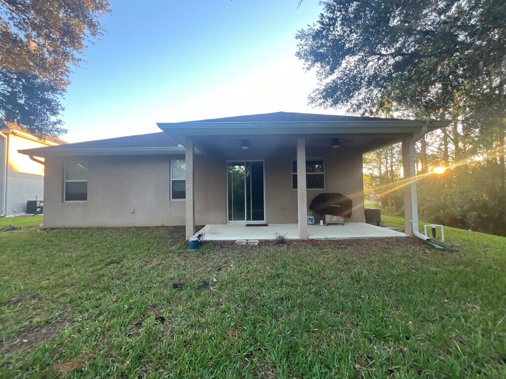 Coming Soon! Beautiful 3 Bedroom 2 Bath home on a quiet street in the community of Hunter's Ridge. This home has privacy on its premium lot with green space to the west of the home and in the back. This home features high ceilings and tiled flooring. There is an open living space with Kitchen / Dining Room / Living Room Combo. The kitchen is updated with new counter tops, 42' custom cabinetry and recessed island with breakfast bar. There is a flex living space perfect for an office or kids. The master bedroom is oversized with walk in shower and large walk-in closet. The living space leads out to the covered lanai. There is a dedicated laundry space with washer & dryer. Lawn maintenance is included in rent. Utilites are tenant responsibility. No Smoking/Pet may be considered. $2445/month. 1 months rent & security deposit equal to 1 months rent is required to move in. Background/credit check are required. All Blue Palm Property Management residents are enrolled in the Resident Benefits Package (RBP) for $50.00/month which includes liability insurance, credit building to help boost the resident’s credit score with timely rent payments, up to $1M Identity Theft Protection, HVAC air filter delivery (for applicable properties), move-in concierge service making utility connection and home service setup a breeze during your move-in, our best-in-class resident rewards program, on-demand pest control, and much more! More details upon application. Pathways Elementary School Grades: PK-5 Distance: 0.7 mi David C Hinson Sr Middle School Grades: 6-8 Distance: 4 mi Mainland High School Grades: 9-12 Distance: 8 mi