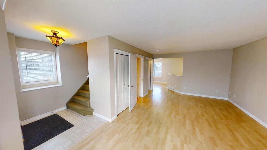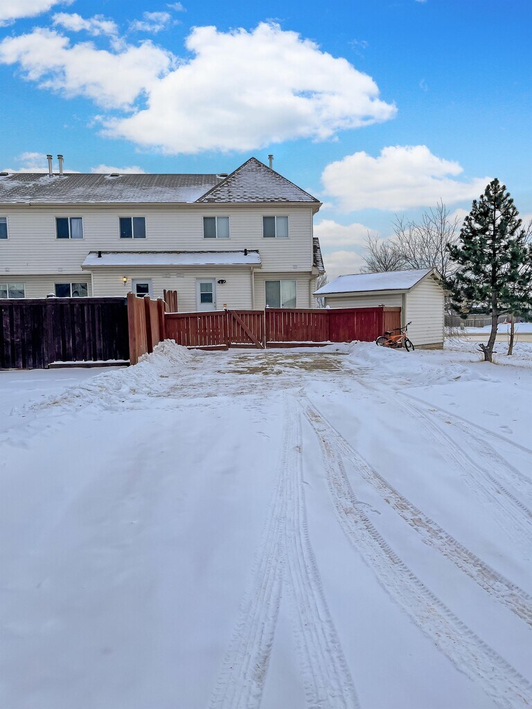3 bed 2.5 bath END unit townhome in Pinnacle. Enter into bright front facing living room. Convenient half bath on main level. Separate dining area. Functional kitchen with black appliances. Laundry off the kitchen at the rear entrance. Large primary bedroom up stairs with 4 piece ensuite bathroom. 2 other bedrooms and 2nd full bathroom upstairs. Unfinished basement offers lots of heated storage. Full fenced backyard with storage shed and rear parking. *Pet friendly with $50/mo pet fee* Application required prior to viewing. See it in 3D!