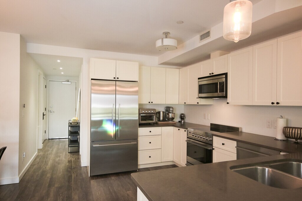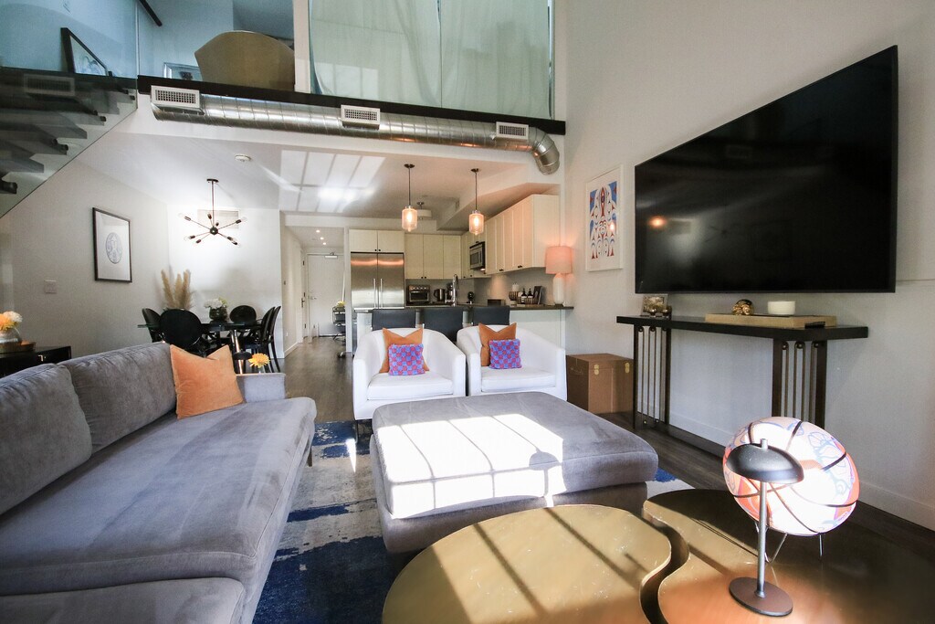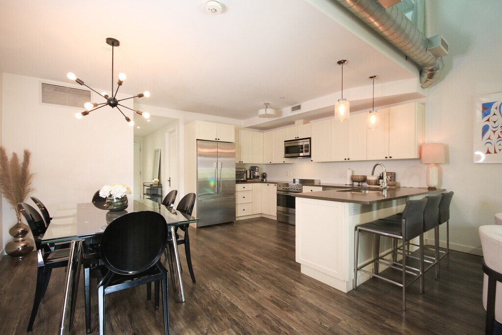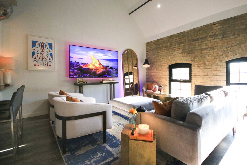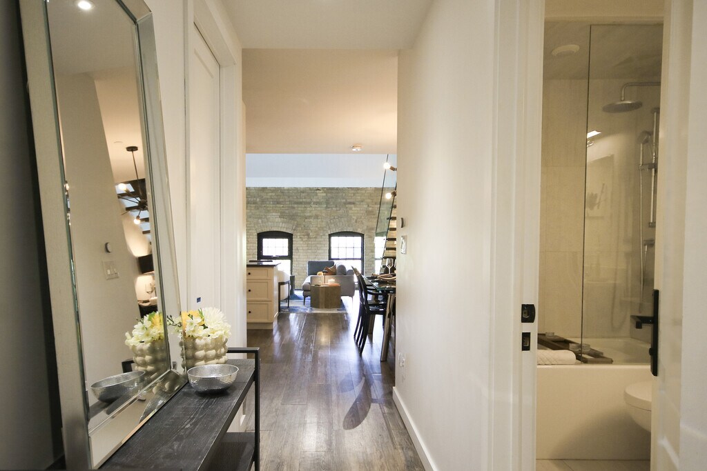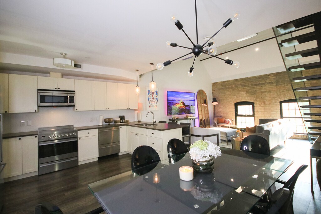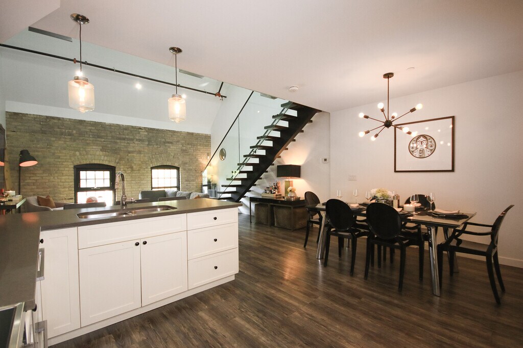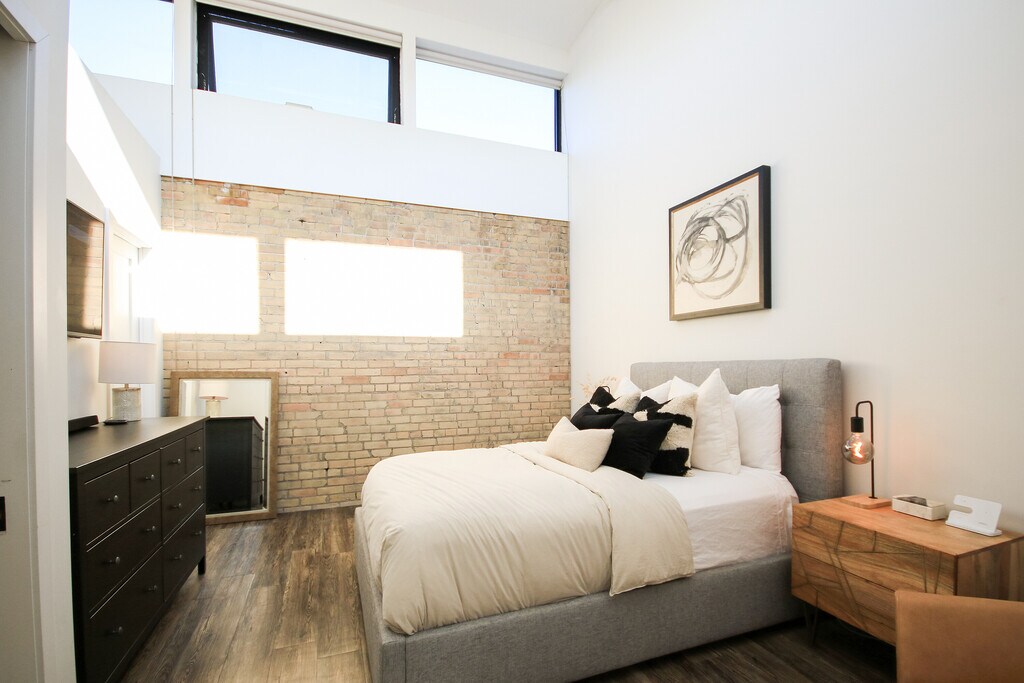 Restored historic 1902 General Electric Powerhouse Lofts - Super cool boutique building in the heart of the Junction. Industrial two storey 1335 square foot loft with open-concept living, dining, and gourmet kitchen soar beneath 18-foot ceilings, anchored by exposed brick, a floating staircase, and unique architectural lighting. Gourmet kitchen with high end appliances, it's a host's dream for entertaining or relaxing in style. Upstairs, the spacious primary suite with 16-foot ceilings, a four piece ensuite, and flooded with natural light, including two power-operated skylights. The second bedroom (large enough for a queen bed) can adapt to your lifestyle, whether as a guest room, home office, gym, or art studio. This loft is perfectly suited to your lifestyle, ideally located within walking distance to Geary Avenue, Bloor West, Roncesvalles, the Junction, and St. Clair, this address offers the ideal balance of calm and connectivity - truly the best of both worlds.