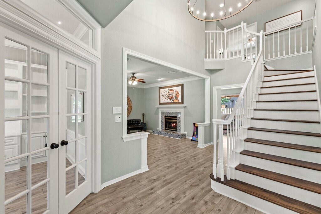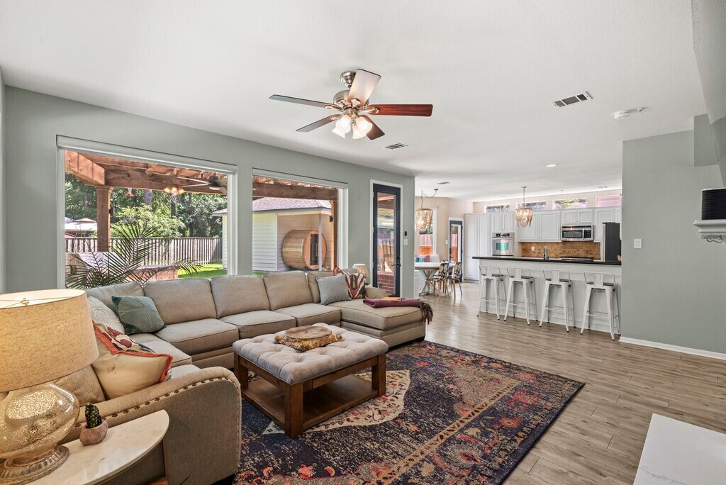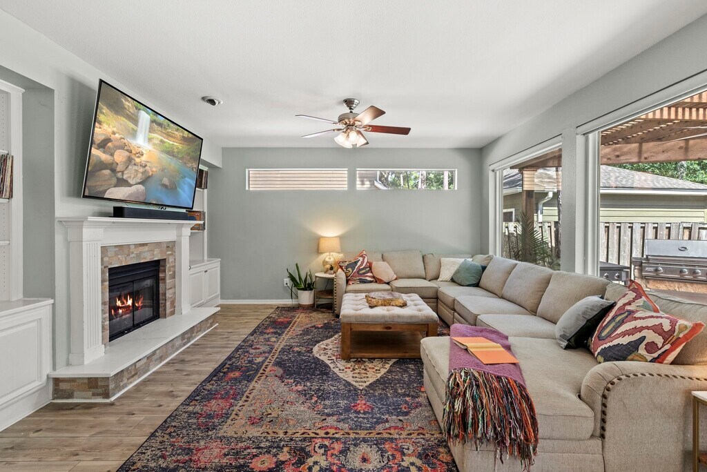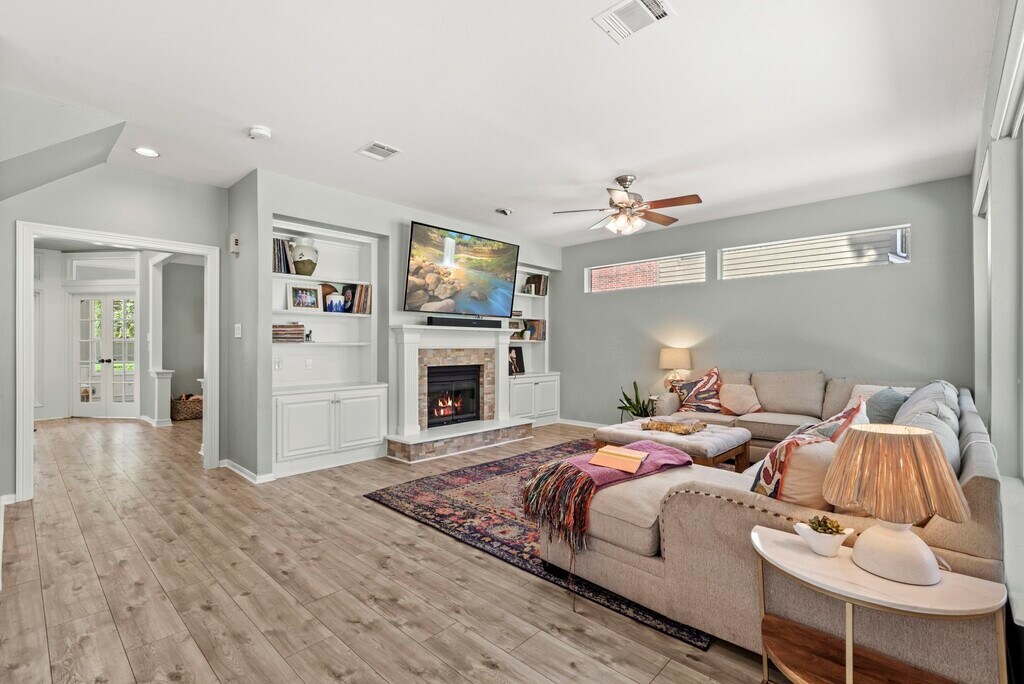 Welcome to 31 Treescape—a home designed for connection,comfort,and community. The large covered front porch sets the tone for gatherings with friends,family,and the amazing neighbors on this quiet street. Inside,flexible spaces await: a home office with custom-built-ins,a sunlit formal dining room (currently a homeschool space),and a music/play room with one of two gas fireplaces. The open-concept living area flows into a spacious kitchen with endless counter space,bar seating,and a custom-built-in breakfast nook. Upstairs,the primary suite is a retreat with a clawfoot tub,a separate shower,and a walk-in closet. Three additional bedrooms include one used as a media room. Out back,enjoy a covered patio with a built-in grill,playset,and room for a pool (rendering included). Walk to top-rated schools and nearby parks. Major updates: upstairs bath remodel (2025),Hot Water Heater (2025),windows (2024),paint (2025),roof & HVAC (2017). Full list in attachments. MLS# 69487173